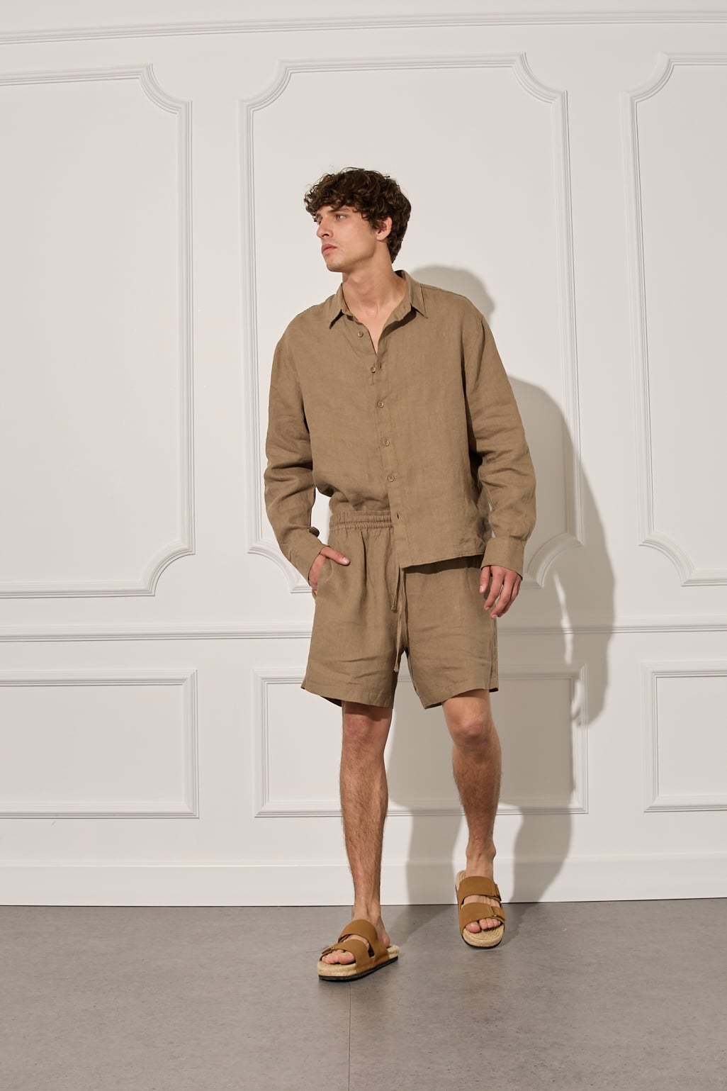 %100 Keten Beli Lastikli Şort