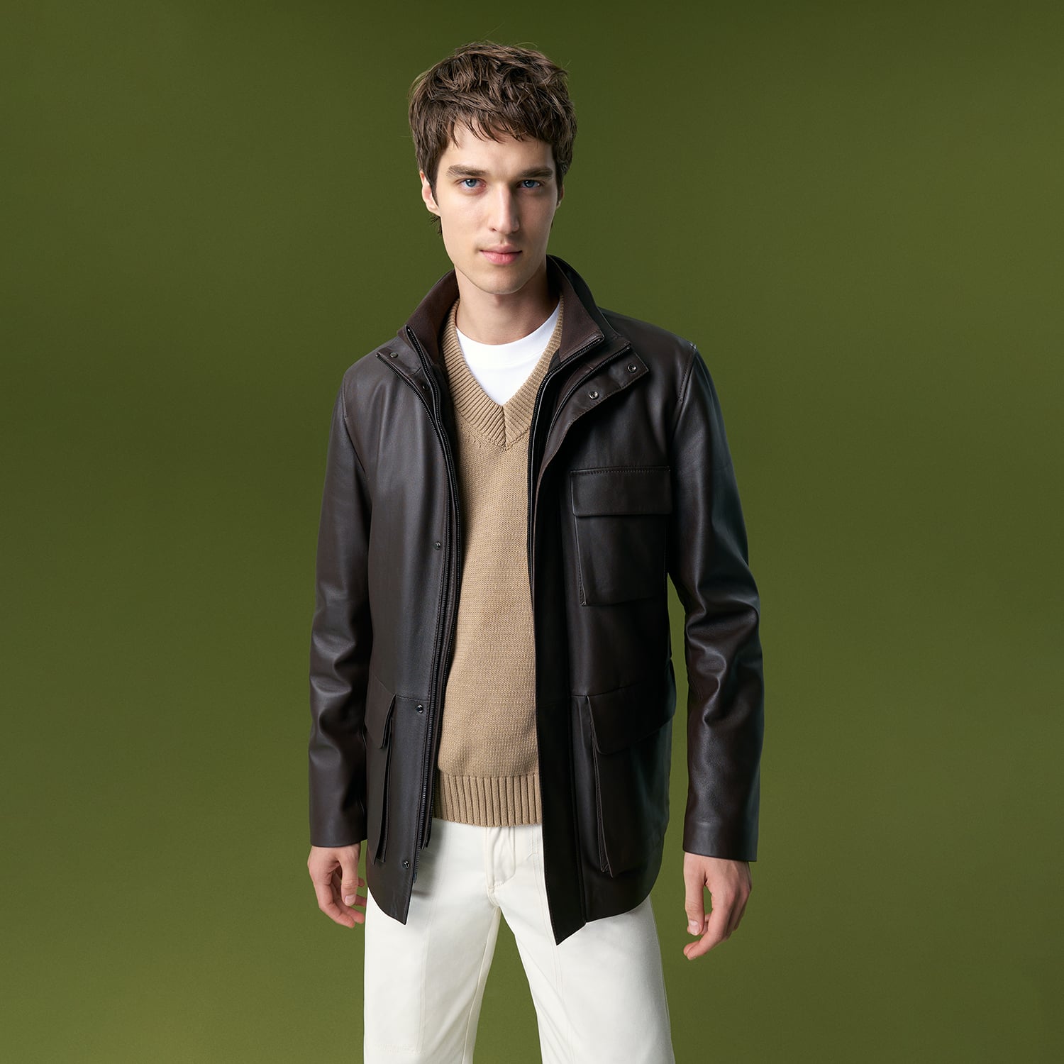 Erkek hakim yakalı çıkma yelek detaylı deri mont. Önden metal fermuar ve gizli metal çıtçıt kapamalıdır. Ön üstte bir adet kapaklı göğüs cebi, altta iki adet üstten girişli cebi ve yandan girişli cebi mevcuttur. Yakada triko detaylı ve su itişli kumaştan çıkabilir yelek detayı kullanılmıştır. %100 koyun derisinden olup özel astarlı çalışılmıştır. Bu ürünü özel mesajınızla kişiselleştirebilirsiniz. Kişiye özel üretilen veya üzerine mesaj yazılarak kişiselleştirilen ürünlerin iade ve değişimi mümkün değildir. Bu ürün, et endüstrisinin yan ürünü olarak elde edilen ve sürdürülebilir yöntemler ile Leather Working Group Altın sertifikalı Desa tesislerinde tabaklanan deriler kullanılarak üretilmiştir.-Erkek hakim yakalı çıkma yelek detaylı deri mont. Önden metal fermuar ve gizli metal çıtçıt kapamalıdır. Ön üstte bir adet kapaklı göğüs cebi, altta iki adet üstten girişli cebi ve yandan girişli cebi mevcuttur. Yakada triko detaylı ve su itişli kumaştan çıkabilir yelek detayı kullanılmıştır. %100 koyun derisinden olup özel astarlı çalışılmıştır. Bu ürünü özel mesajınızla kişiselleştirebilirsiniz. Kişiye özel üretilen veya üzerine mesaj yazılarak kişiselleştirilen ürünlerin iade ve değişimi mümkün değildir. Bu ürün, et endüstrisinin yan ürünü olarak elde edilen ve sürdürülebilir yöntemler ile Leather Working Group Altın sertifikalı Desa tesislerinde tabaklanan deriler kullanılarak üretilmiştir.