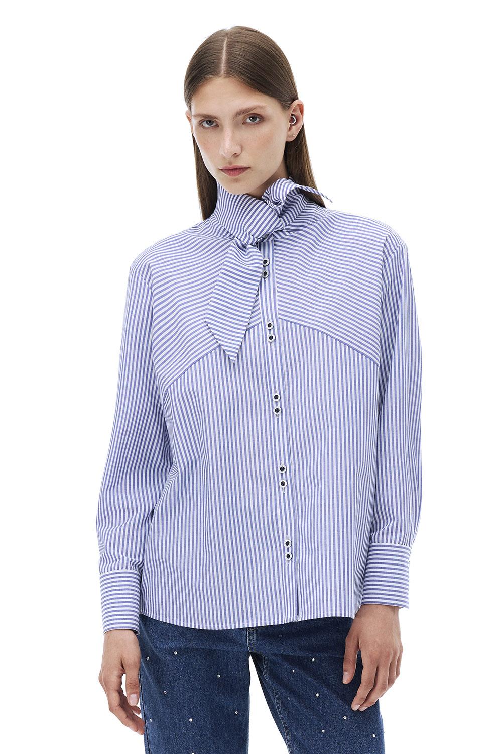 Adalias Regular Fit Çizgili Desen Standart Boy Düşük Kollu Gömlek Yaka Beyaz İndigo Gömlek