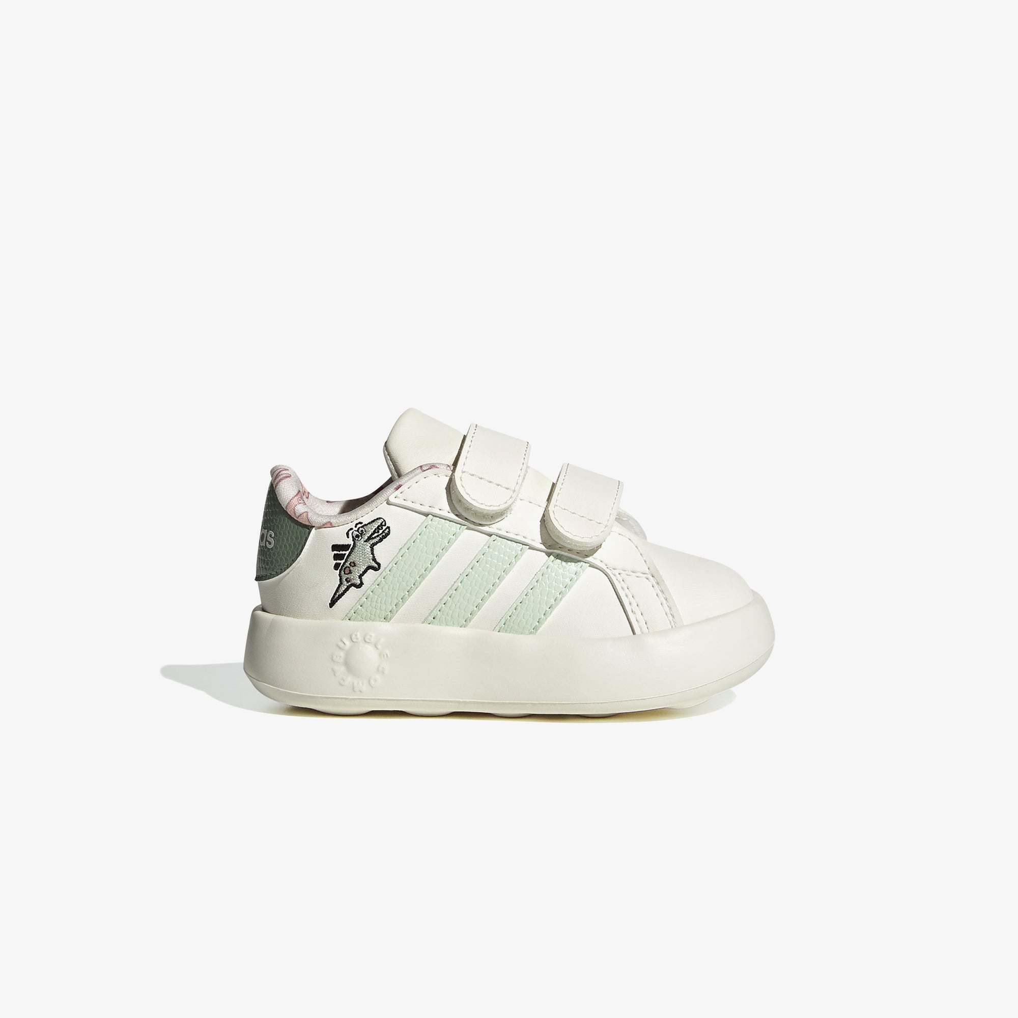Adidas Grand Court Dino, minik adımlar için konfor ve eğlenceyi bir araya getiriyor. Klasik Grand Court tasarımını eğlenceli dinozor detaylarıyla süsleyen bu model, çocukların günlük aktivitelerinde rahatça hareket etmelerini sağlamak için tasarlandı. Yumuşak sentetik deri üst yüzeyi ve çift cırt cırtlı kapanışı ile hem dayanıklı hem de pratik bir kullanım sunar. Hafif yapısı ve esnek tabanı sayesinde gün boyu konfor sağlayarak, küçük maceraperestlerin her adımda rahat etmesine yardımcı olur.