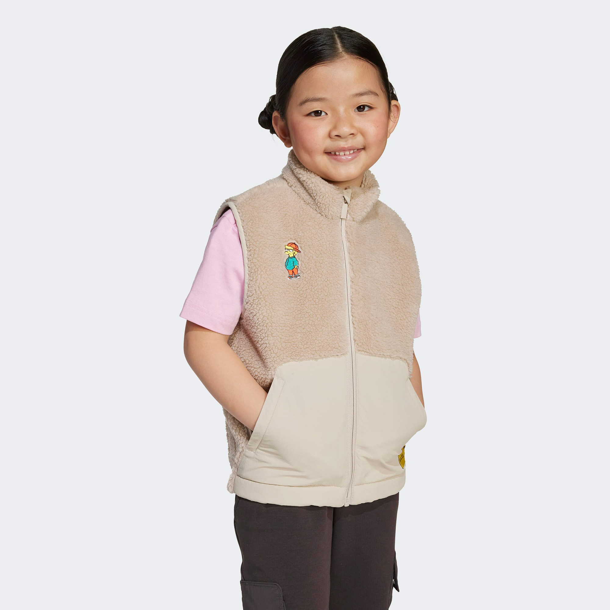 adidas LK Simpsons Çocuk Bej Yelek, eğlenceli Simpsons detaylarıyla çocukların ilgisini çeker. Bol ve rahat kesimi, hareket özgürlüğü sağlar ve günlük maceralar için idealdir. Ön taraftaki renkli Lisa Simpson nakışı ve sırt kısmındaki kolej stili adidas yazısı tasarımı tamamlar. Yumuşak polar kumaşı, açık havada keşfe çıkarken veya kanepede uzanıp favori bölümlerini izlerken çocukları sıcak tutar.