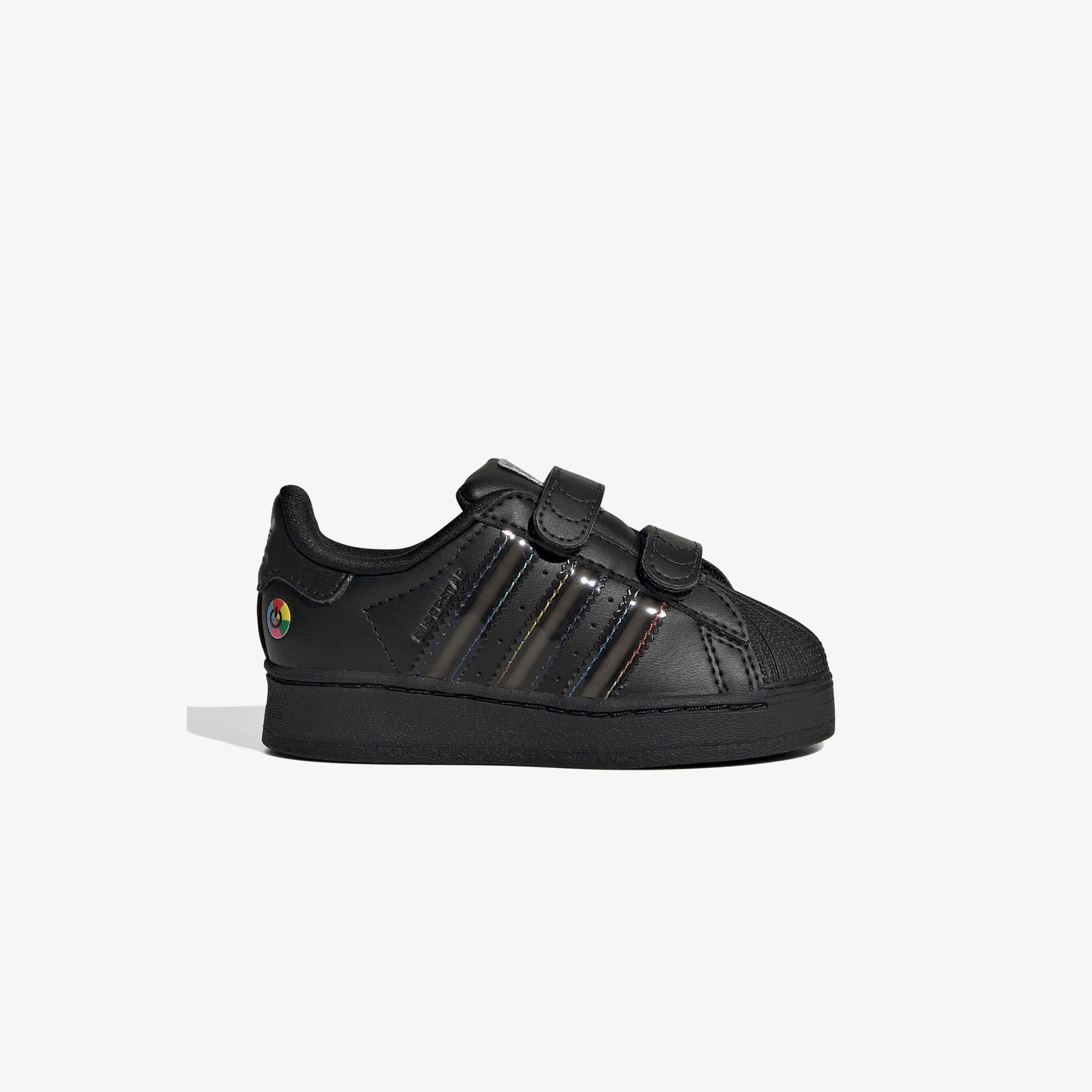 Küçük ayaklar. Büyük adımlar. Bebeklere özel bu adidas Superstar ayakkabı, sentetik üst yüzeyindeki cırt cırtlı bantlarla kolayca giydirip çıkarılabilir. Küçük kaşifler için tasarlanan ikonik ayakkabı, ışıklı 3 bant detayı ile günü aydınlatır. Ünlü kauçuk burun yapısı ve kauçuk taban gibi klasik detayları ile retro basketbol ayakkabısına sadık kalır.