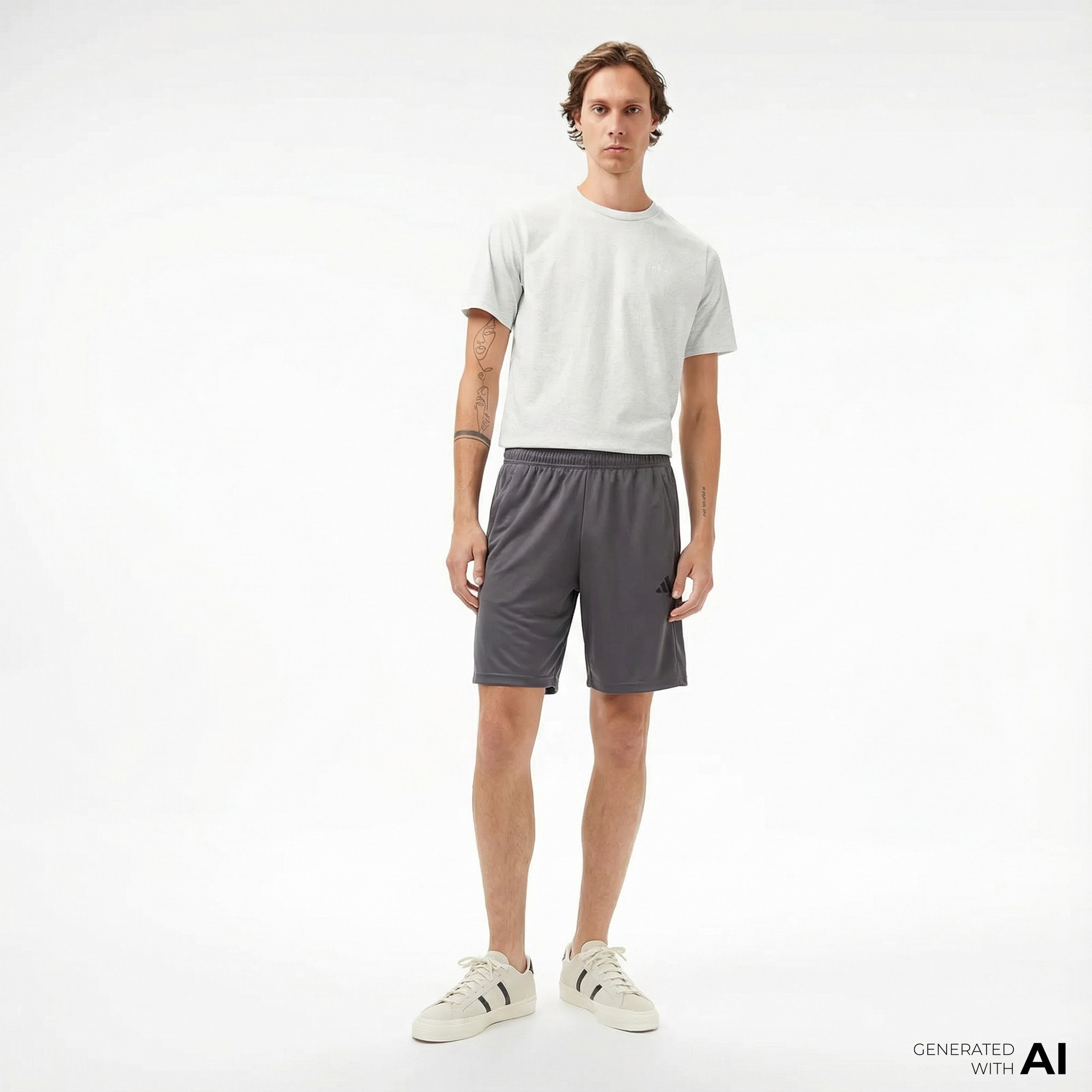 adidas Train Essentials Piqué 3 Stripes Training Erkek Gri Antrenman Şortu