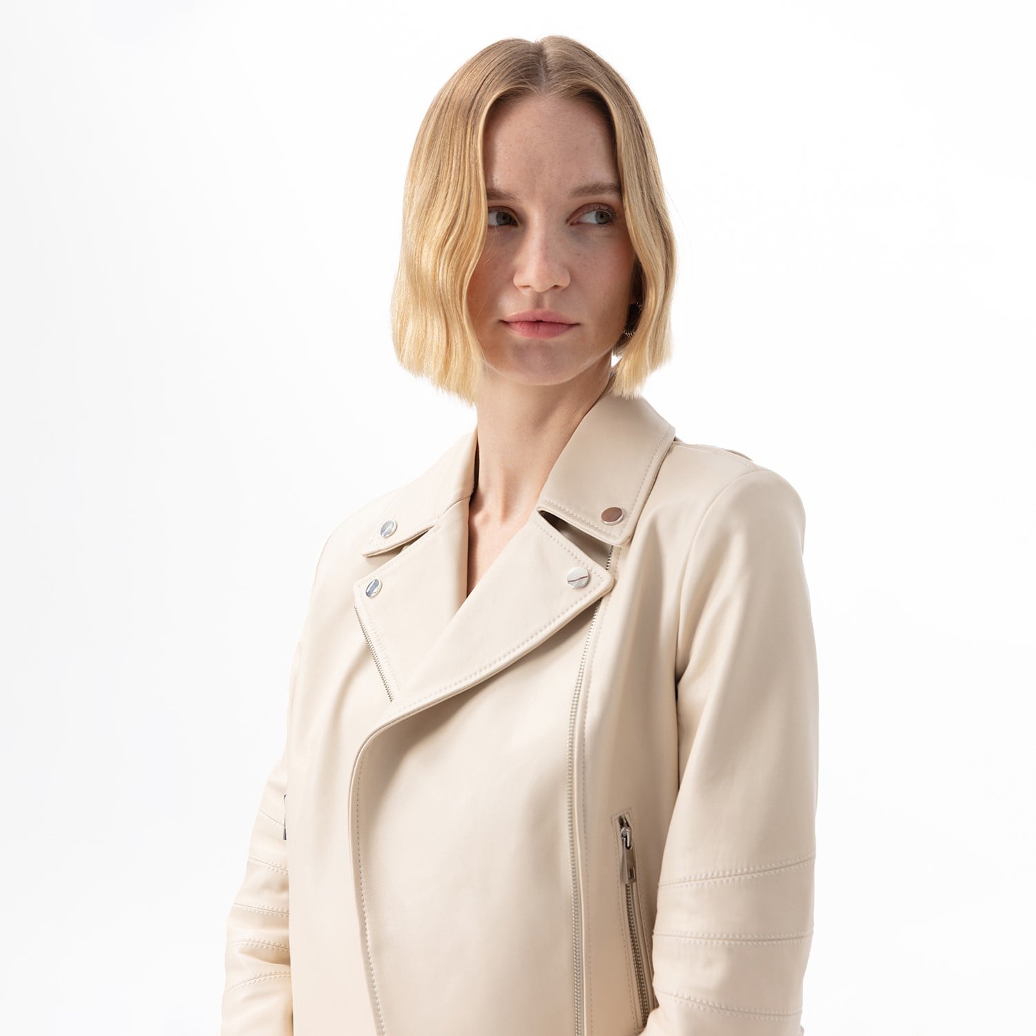 Kadın yakalı deri biker ceket. %100 Koyun derisidir. Önden kruvaze metal fermuar kapamalıdır. Nikel kaplamalıdır. Önde iki adet yandan girişli metal fermuarlı cebi mevcuttur. Yakada çıtçıt detayı mevcuttur. Kolda metal fermuar detayı kullanılmıştır. Dekoratif dikişler ile ürüne hareket katılmıştır. Dekoratif dikişler ile ürüne hareket katılmıştır. %100 koyun derisinden olup astarlı çalışılmıştır. Bu ürünü özel mesajınızla kişiselleştirebilirsiniz. Kişiye özel üretilen veya üzerine mesaj yazılarak kişiselleştirilen ürünlerin iade ve değişimi mümkün değildir. Bu ürün, et endüstrisinin yan ürünü olarak elde edilen ve sürdürülebilir yöntemler ile Leather Working Group Altın sertifikalı Desa tesislerinde tabaklanan deriler kullanılarak üretilmiştir.-Kadın yakalı deri biker ceket. %100 Koyun derisidir. Önden kruvaze metal fermuar kapamalıdır. Nikel kaplamalıdır. Önde iki adet yandan girişli metal fermuarlı cebi mevcuttur. Yakada çıtçıt detayı mevcuttur. Kolda metal fermuar detayı kullanılmıştır. Dekoratif dikişler ile ürüne hareket katılmıştır. Dekoratif dikişler ile ürüne hareket katılmıştır. %100 koyun derisinden olup astarlı çalışılmıştır. Bu ürünü özel mesajınızla kişiselleştirebilirsiniz. Kişiye özel üretilen veya üzerine mesaj yazılarak kişiselleştirilen ürünlerin iade ve değişimi mümkün değildir. Bu ürün, et endüstrisinin yan ürünü olarak elde edilen ve sürdürülebilir yöntemler ile Leather Working Group Altın sertifikalı Desa tesislerinde tabaklanan deriler kullanılarak üretilmiştir.