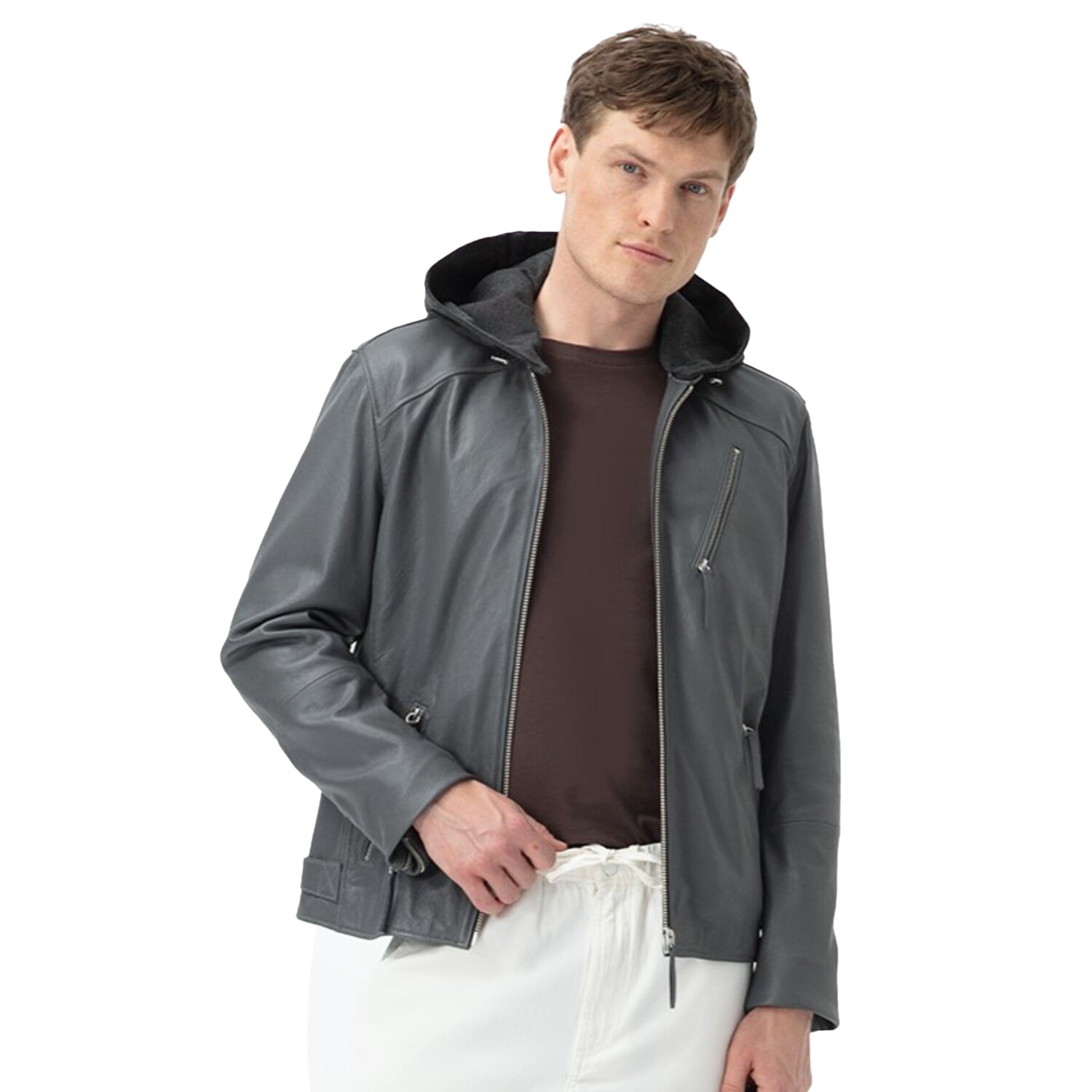 Erkek hafif hakim yakalı çıkma kapüşon detaylı deri ceket. Önden metal fermuar kapamalıdır. Ön üstte bir adet metal fermuarlı göğüs cebi, altta iki adet metal fermuarlı yandan girişli cebi mevcuttur. Kollarda metal fermuar detayı bulunmaktadır. %100 koyun derisinden olup astarlı çalışılmıştır. Bu ürünü özel mesajınızla kişiselleştirebilirsiniz. Kişiye özel üretilen veya üzerine mesaj yazılarak kişiselleştirilen ürünlerin iade ve değişimi mümkün değildir. Bu ürün, et endüstrisinin yan ürünü olarak elde edilen ve sürdürülebilir yöntemler ile Leather Working Group Altın sertifikalı Desa tesislerinde tabaklanan deriler kullanılarak üretilmiştir.-Erkek hafif hakim yakalı çıkma kapüşon detaylı deri ceket. Önden metal fermuar kapamalıdır. Ön üstte bir adet metal fermuarlı göğüs cebi, altta iki adet metal fermuarlı yandan girişli cebi mevcuttur. Kollarda metal fermuar detayı bulunmaktadır. %100 koyun derisinden olup astarlı çalışılmıştır. Bu ürünü özel mesajınızla kişiselleştirebilirsiniz. Kişiye özel üretilen veya üzerine mesaj yazılarak kişiselleştirilen ürünlerin iade ve değişimi mümkün değildir. Bu ürün, et endüstrisinin yan ürünü olarak elde edilen ve sürdürülebilir yöntemler ile Leather Working Group Altın sertifikalı Desa tesislerinde tabaklanan deriler kullanılarak üretilmiştir.