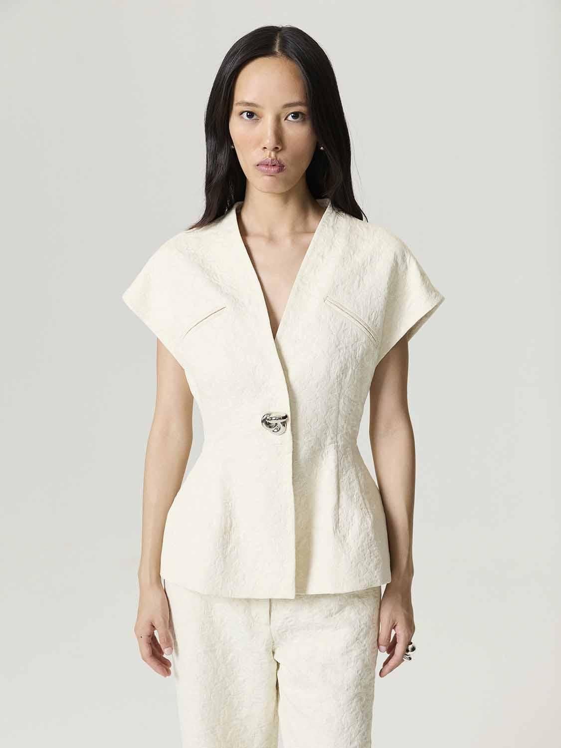 Şık ve çok yönlü bu aksesuar detaylı yelek, normal kesimli dokuma kumaştan, tam astarlı ve şık bir görünüm için tasarlanmıştır. V yaka, çıtçıtlı düğmeli ve suni biyeli cepli tasarıma sahip olan yelek, düşük omuzları ve zarif balenleriyle kolsuz bir görünüme sahiptir. Aksesuar detayları, tasarımı öne çıkararak ofis giyimi, gece kıyafetleri veya modern günlük stil için zarif bir katmanlama parçası haline getirir. Kalıp: Slim Fit Beden Önerisi: Bu, özel kesimli, slim fit bir tasarımdır. Daha rahat bir kesim için bir beden büyük almanızı öneririz. Model Ürün Bedeni: XS Model Bedeni: Boy 1.78 / Göğüs 79 cm / Bel 59 cm / Kalça 86 cm