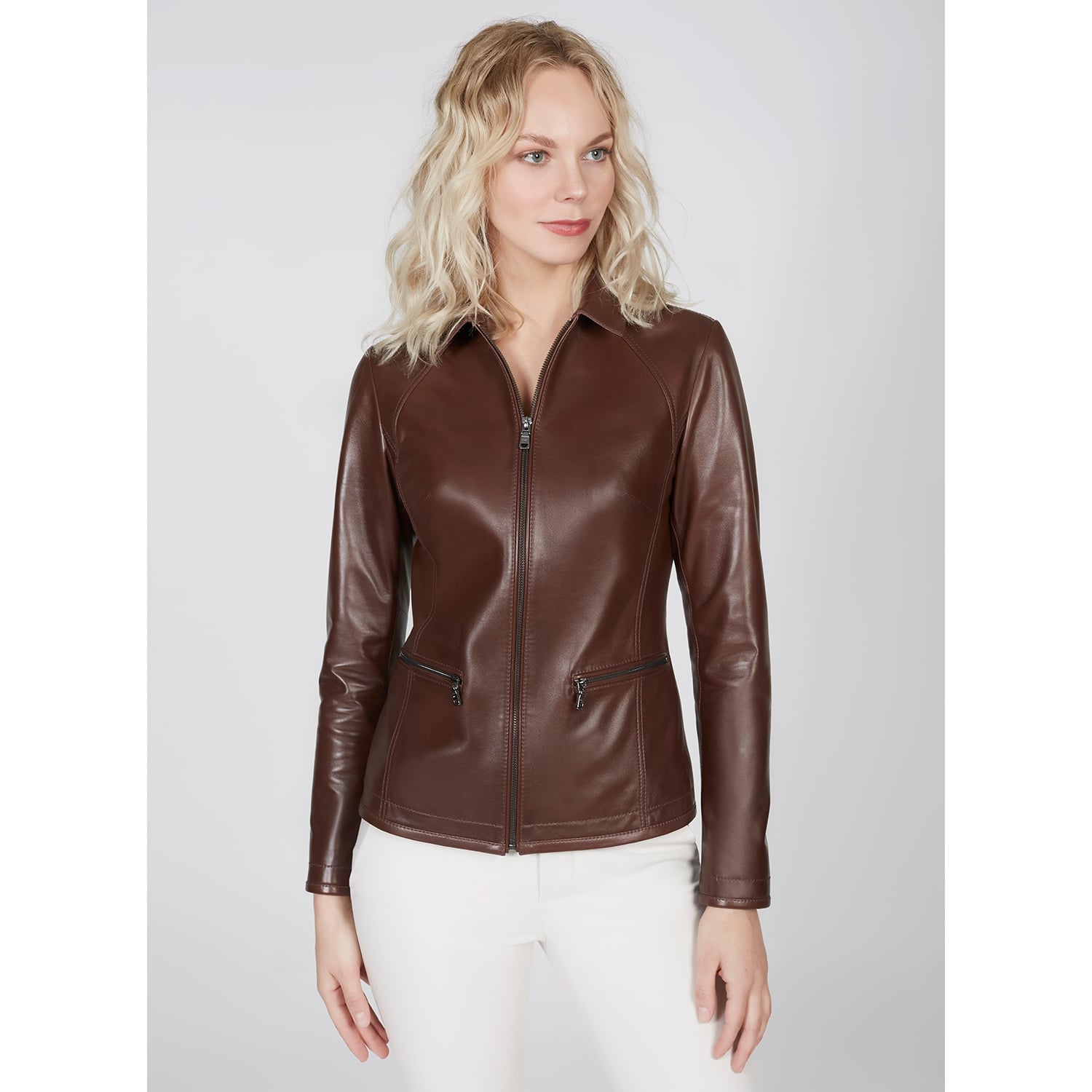 Kadın, deri ceket Gömlek yakalı,önden metal fermuar kapamalı Önde iki adet üstten girişli metal fermuarlı cebi bulunmaktadır Kollarda metal fermuar detayları bulunmaktadır Günlük kullanım için çok uygun ve rahat bir kalıptır Ürün %100 koyun derisinden olup, astarlı çalışılmıştır
