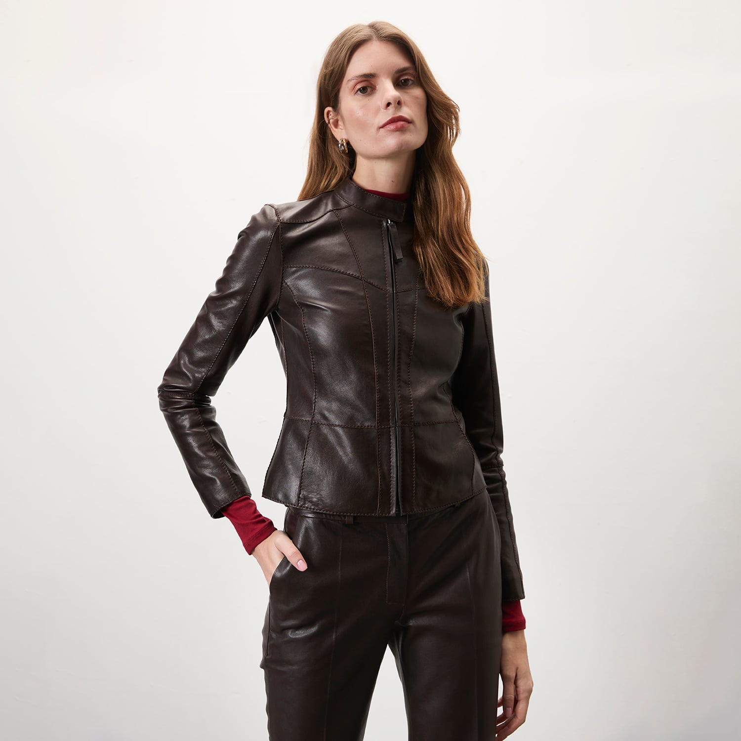 Kadın hafif hakim yakalı fit deri ceket. Önden metal fermuar kapamalıdır. Yakada gizli çıtçıt detayı mevcuttur. Önde yandan girişli cebi bulunmaktadır. Ürün üzerine özel olarak dekoratif kesim ve dikişler ile hareketlilik verilmiştir. %100 koyun derisi olup astarlı çalışılmıştır.-Kadın hafif hakim yakalı fit deri ceket. Önden metal fermuar kapamalıdır. Yakada gizli çıtçıt detayı mevcuttur. Önde yandan girişli cebi bulunmaktadır. Ürün üzerine özel olarak dekoratif kesim ve dikişler ile hareketlilik verilmiştir. %100 koyun derisi olup astarlı çalışılmıştır.