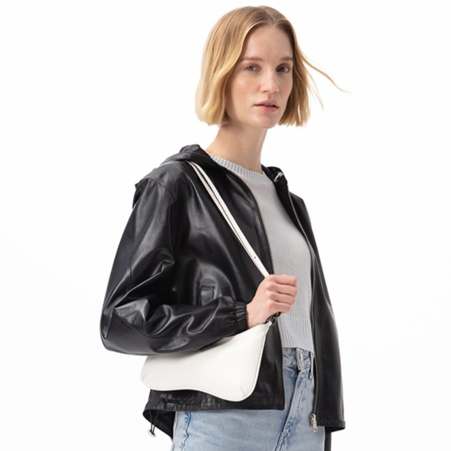 Kadın çift taraflı kapüşonlu bomber ceket. Önden metal fermuar kapamalıdır. Ön yüzü deri olup diğer yüzünde su itici kumaş kullanılmıştır. Her iki yüzünde de yandan girişli cebi mevcuttur. Etek ucu ve kapüşon kısmında ayarlanabilir kulisan detayı bulunmaktadır. %100 koyun derisinden olup, çift taraflı çalışılmıştır. Bu ürün, et endüstrisinin yan ürünü olarak elde edilen ve sürdürülebilir yöntemler ile Leather Working Group Altın sertifikalı Desa tesislerinde tabaklanan deriler kullanılarak üretilmiştir.-Kadın çift taraflı kapüşonlu bomber ceket. Önden metal fermuar kapamalıdır. Ön yüzü deri olup diğer yüzünde su itici kumaş kullanılmıştır. Her iki yüzünde de yandan girişli cebi mevcuttur. Etek ucu ve kapüşon kısmında ayarlanabilir kulisan detayı bulunmaktadır. %100 koyun derisinden olup, çift taraflı çalışılmıştır. Bu ürün, et endüstrisinin yan ürünü olarak elde edilen ve sürdürülebilir yöntemler ile Leather Working Group Altın sertifikalı Desa tesislerinde tabaklanan deriler kullanılarak üretilmiştir.