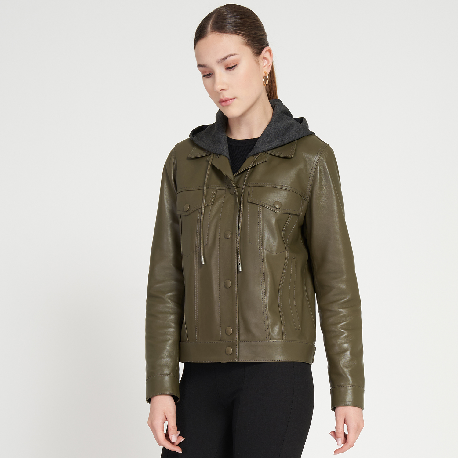 Kadın çıkma kapüşonlu deri mont. Gömlek yakalı, önden deri kaplı çıtçıt kapamalıdır. Üstte iki adet kapaklı üstten girişli göğüs cebi, altta iki adet yandan girişli cebi mevcuttur. %100 koyun derisinden ve astarlı çalışılmıştır. M beden için arka orta boy ölçüsü; 58 cmdir. Bu ürünü özel mesajınızla kişiselleştirebilirsiniz. Kişiye özel üretilen veya üzerine mesaj yazılarak kişiselleştirilen ürünlerin iade ve değişimi mümkün değildir. Bu ürün, et endüstrisinin yan ürünü olarak elde edilen ve sürdürülebilir yöntemler ile Leather Working Group Altın sertifikalı Desa tesislerinde tabaklanan deriler kullanılarak üretilmiştir.-Kadın çıkma kapüşonlu deri mont. Gömlek yakalı, önden deri kaplı çıtçıt kapamalıdır. Üstte iki adet kapaklı üstten girişli göğüs cebi, altta iki adet yandan girişli cebi mevcuttur. %100 koyun derisinden ve astarlı çalışılmıştır. M beden için arka orta boy ölçüsü; 58 cmdir. Bu ürünü özel mesajınızla kişiselleştirebilirsiniz. Kişiye özel üretilen veya üzerine mesaj yazılarak kişiselleştirilen ürünlerin iade ve değişimi mümkün değildir. Bu ürün, et endüstrisinin yan ürünü olarak elde edilen ve sürdürülebilir yöntemler ile Leather Working Group Altın sertifikalı Desa tesislerinde tabaklanan deriler kullanılarak üretilmiştir.
