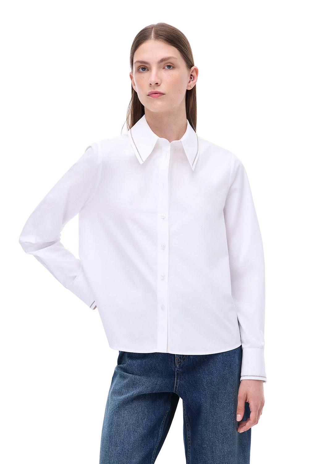 Amelias Regular Fit Standart Boy Takma Kol Gömlek Yaka Beyaz Gömlek
