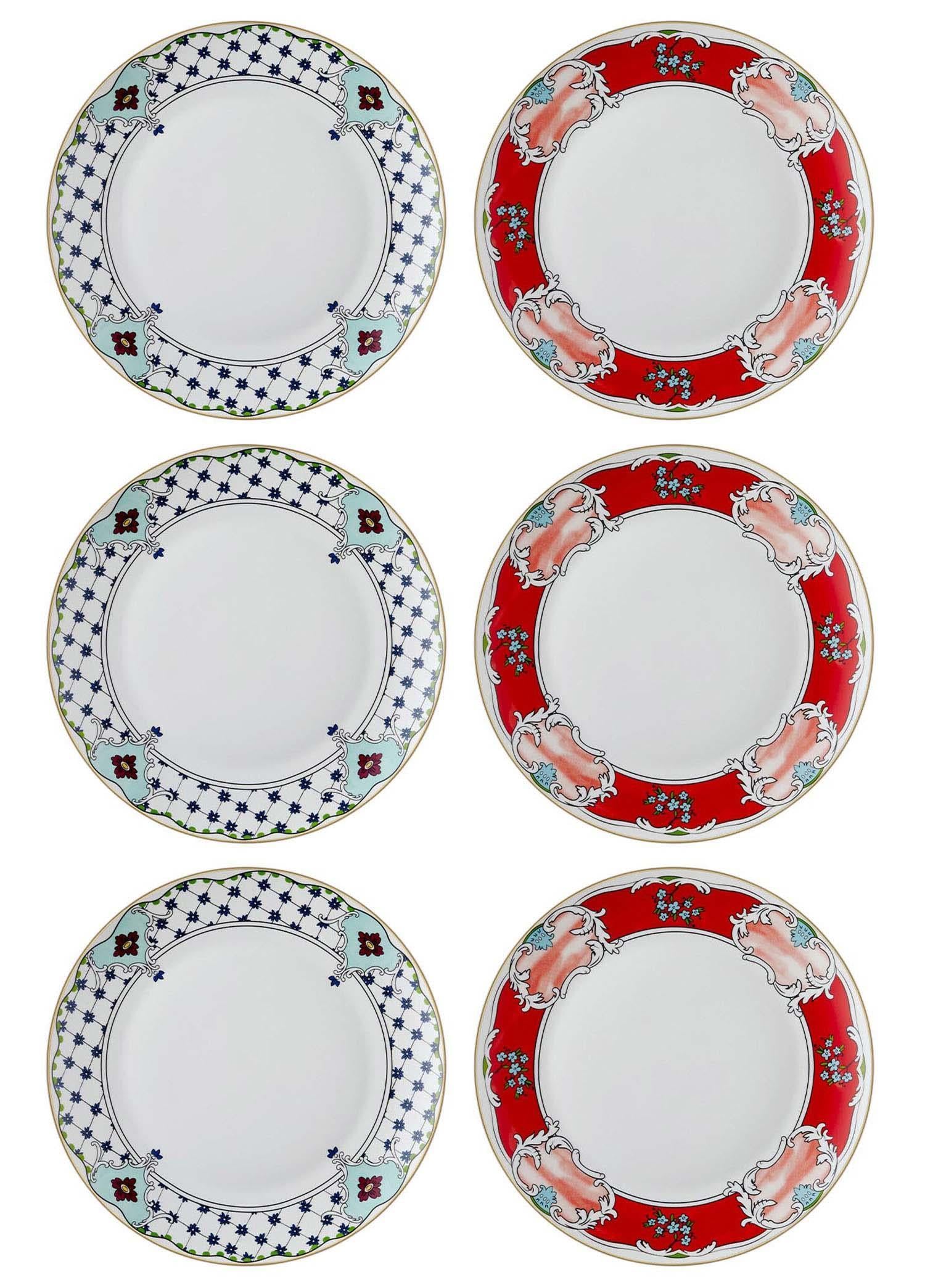 New Bone China Porselenden üretilmiştir. Set İçeriği ; 6 Adet Servis Tabağı Ürün ölçüsü: 27 cm Bulaşık makinesi kullanımına uygundur. Sunumlarınızı daha şık hale getirecek ve misafirlerinizi özendirecek Amore Serisi Servis Tabağı sofraların göz kamaştıran ayrıntısı olacaktır. Deseni ve şık renkleri ile sofralarınıza asalet katacaktır. Şık sofralar kurmanıza olanak tanıyan bu servis tabakları, her detaya ayrı özen gösterenler sevdikleriniz için de hoş bir hediye olacaktır.