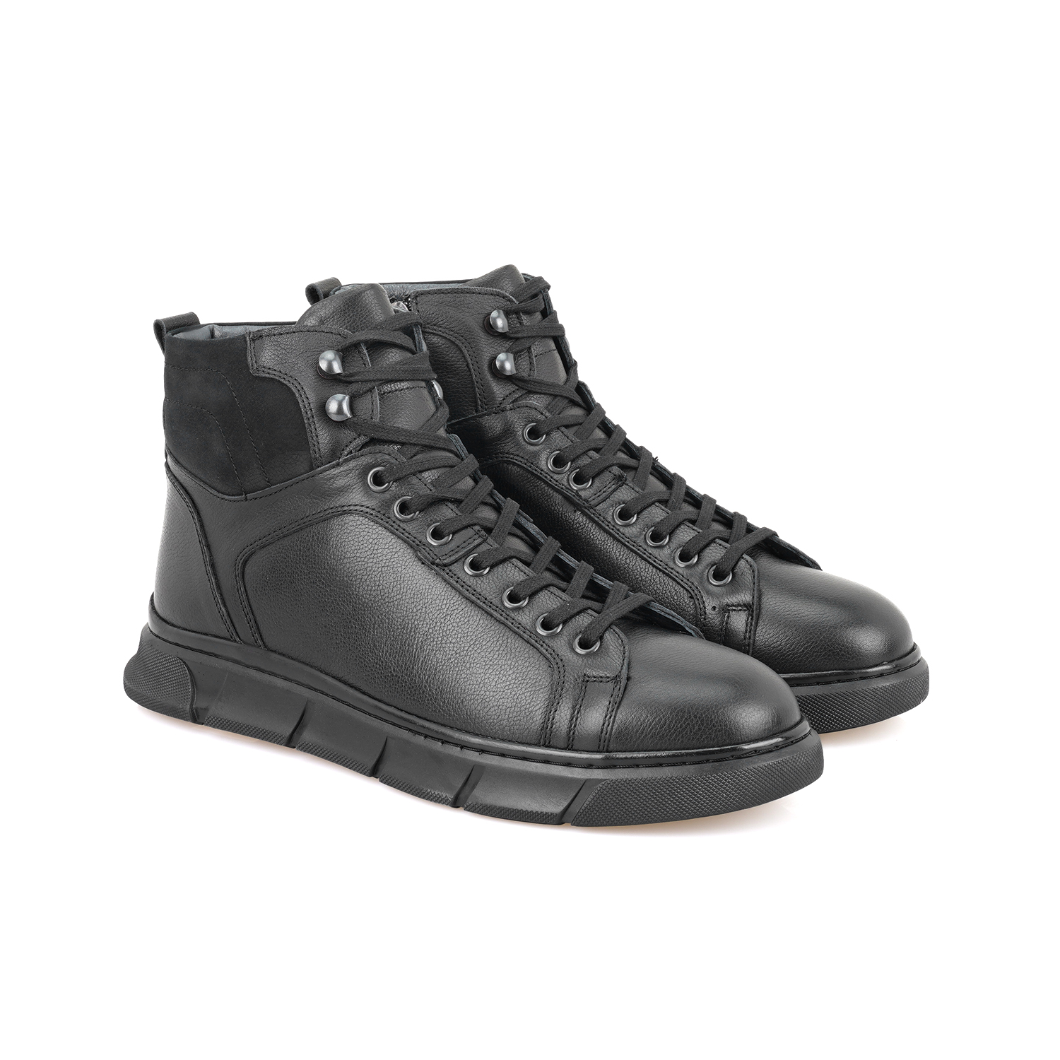 %100 deri, deri iç tabanlı, tekstil astarlı, içten fermuarlı, kauçuk tabanlı, bağcıklı erkek bot.
