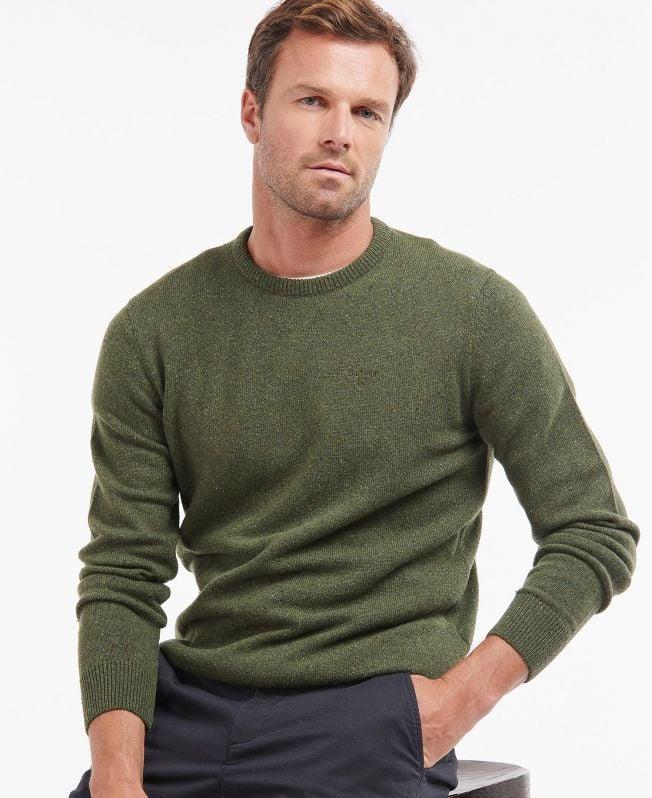 Klasik bir kesimle ve tamamen şekillendirilmiş kol oyuklarıyla tasarlanan bu kalın örgü, yün açısından zengin ve ek lüks için bir tutam ipek içeren tweed-deseni iplikten üretilmiştir. Yuvarlak yaka ve uzun kollara sahip olan bu model, göğüs kısmında tonlarında Barbour Shield işlemeleriyle tamamlanmıştır.