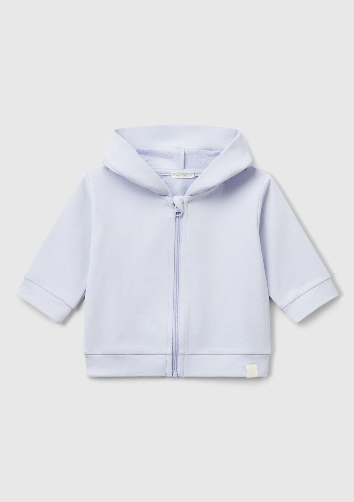 Bebek Açık Mavi Logo Etiketli Fermuarlı Kulaklı Kapüşonlu Sweatshirt