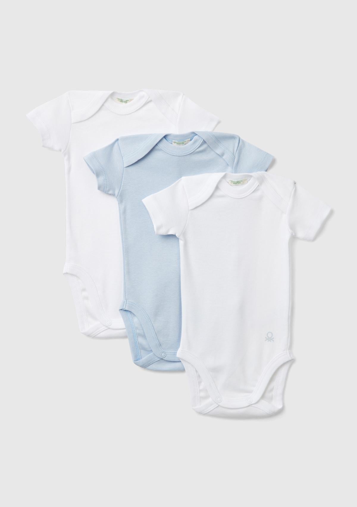 Bebek Beyaz-Mavi Kısa Kollu 3'lü Çıtçıtlı Body