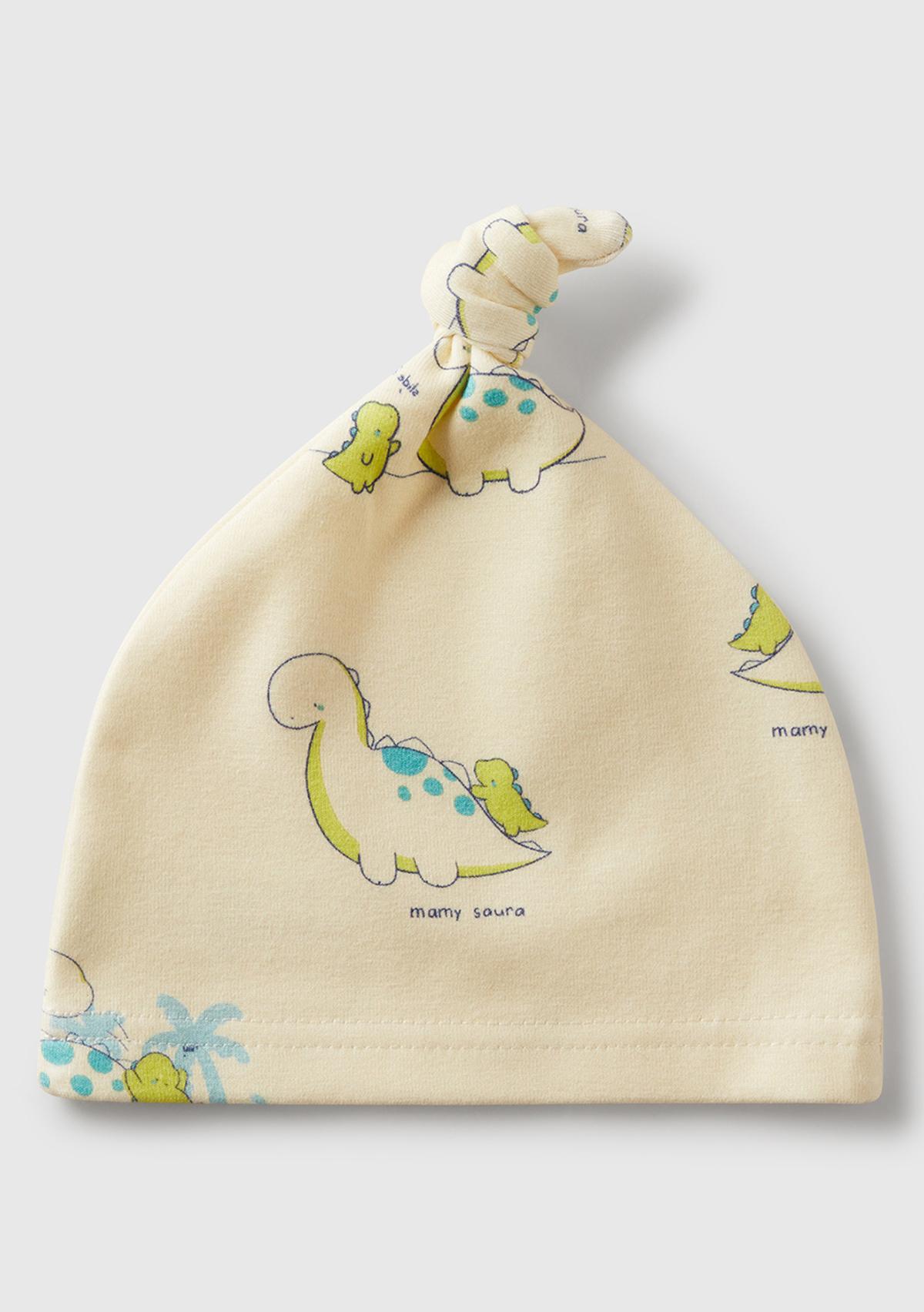 Bebek Ekru Tamamı Baskılı Ucu Düğüm Görünümlü Jarse Şapka