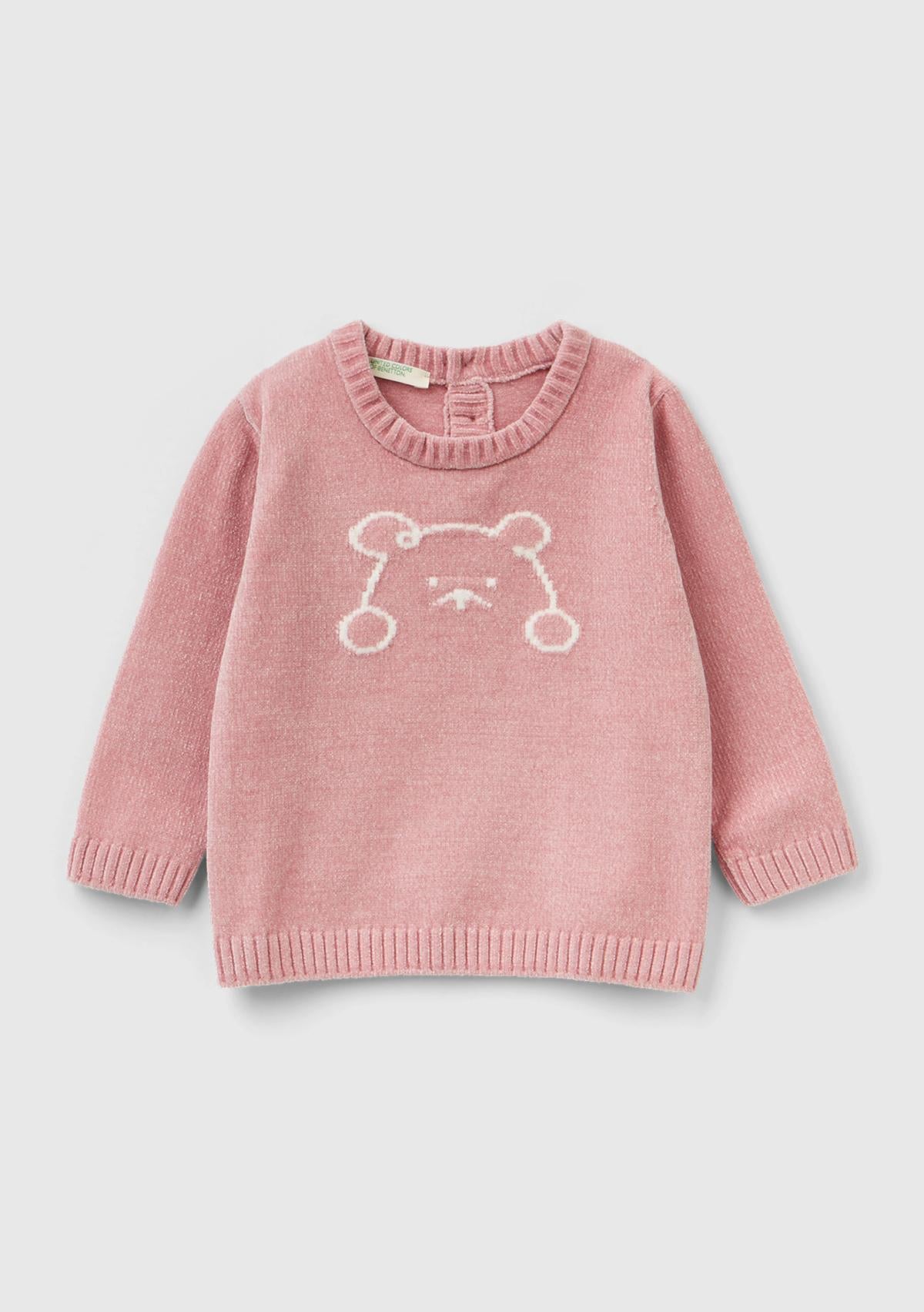 Bebek Gül Kurusu Ayıcık Desenli Kazak