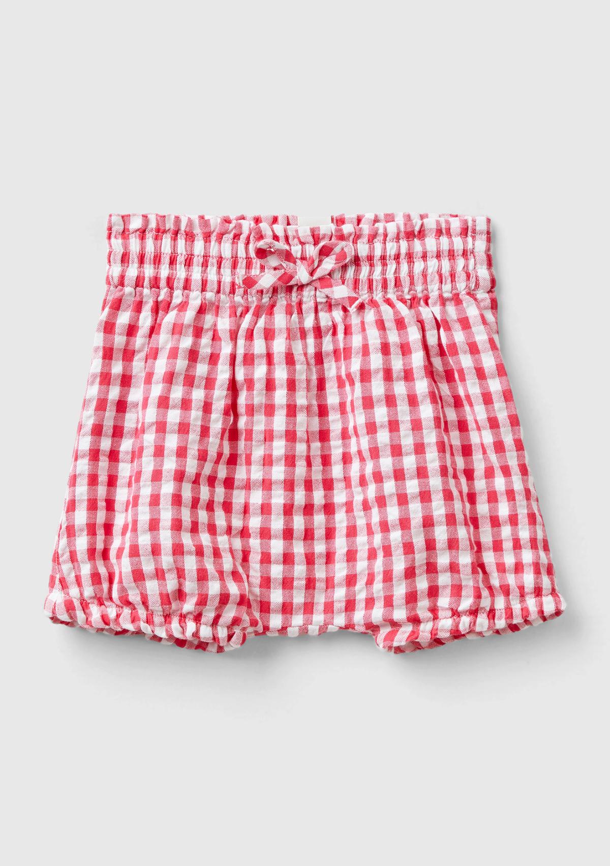 Bebek Kırmızı Tamamı Ekose Desenli Beli Büzgülü Fırfırlı Şort