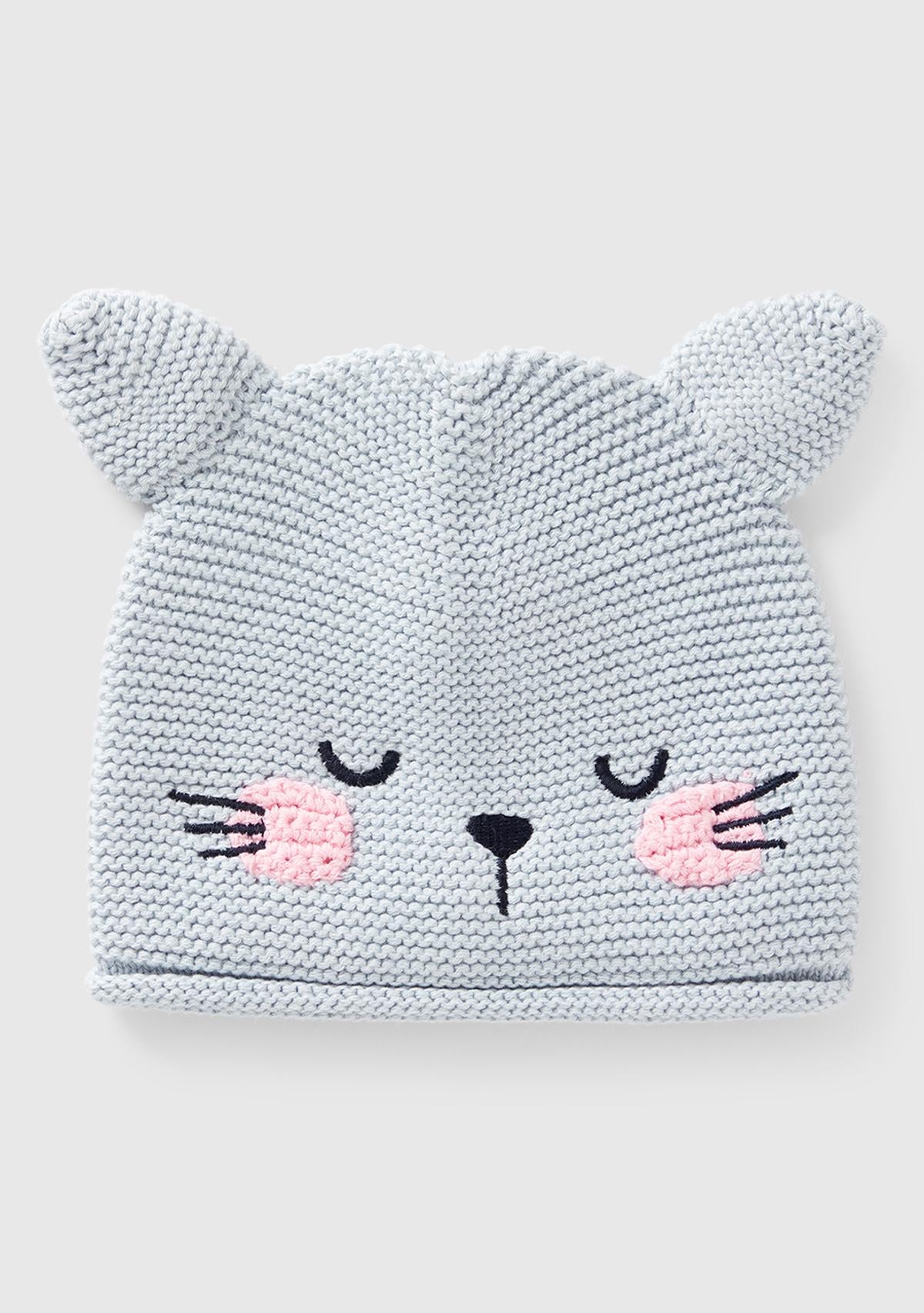 Bebek Mavi Hayvan İşlemeli Kulak Aplikeli Kroşe Şapka