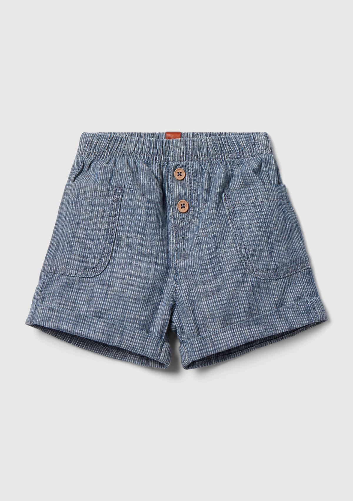 Bebek Mavi Mix Yama Cepli Dekoratif Düğmeli Beli Büzgülü Şort