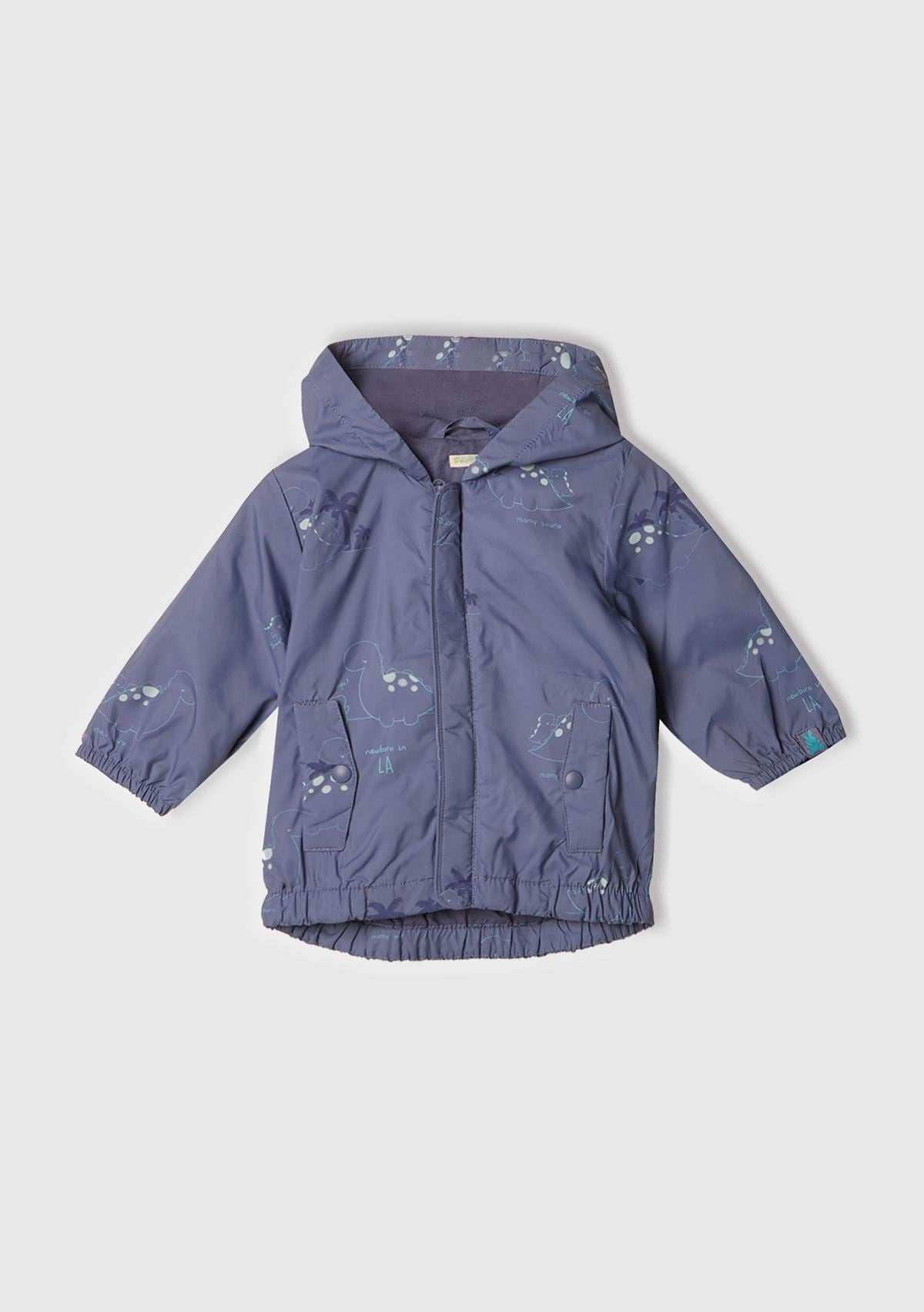 Bebek Mor Tamamı Baskılı Çift Cepli Kapüşonlu Yağmurluk