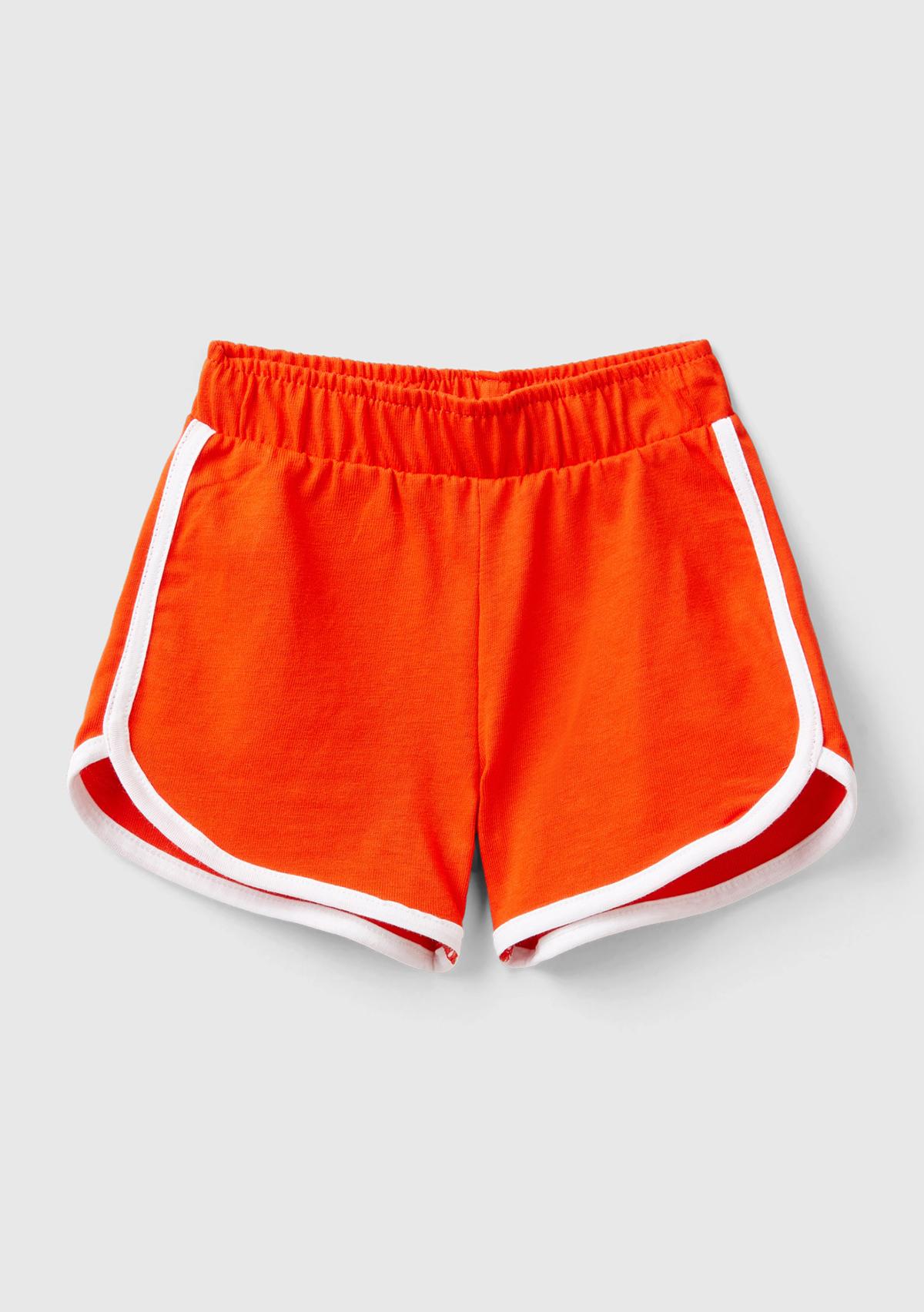 Bebek Nar Çiçeği Yama Cebi Logo Detaylı Kontrast Şeritli Beli Büzgülü Şort