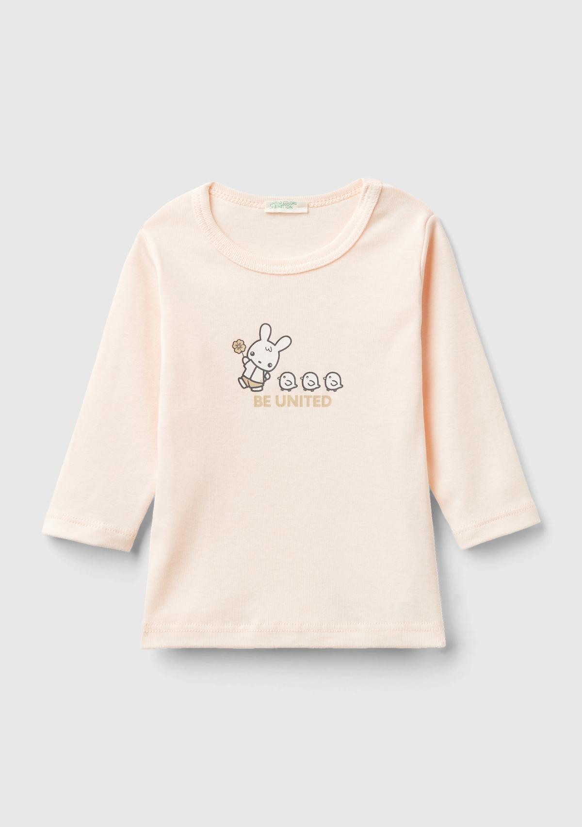 Bebek Pudra Grafik Baskılı Omzu Çıtçıtlı Bisiklet Yaka Uzun Kollu T-Shirt