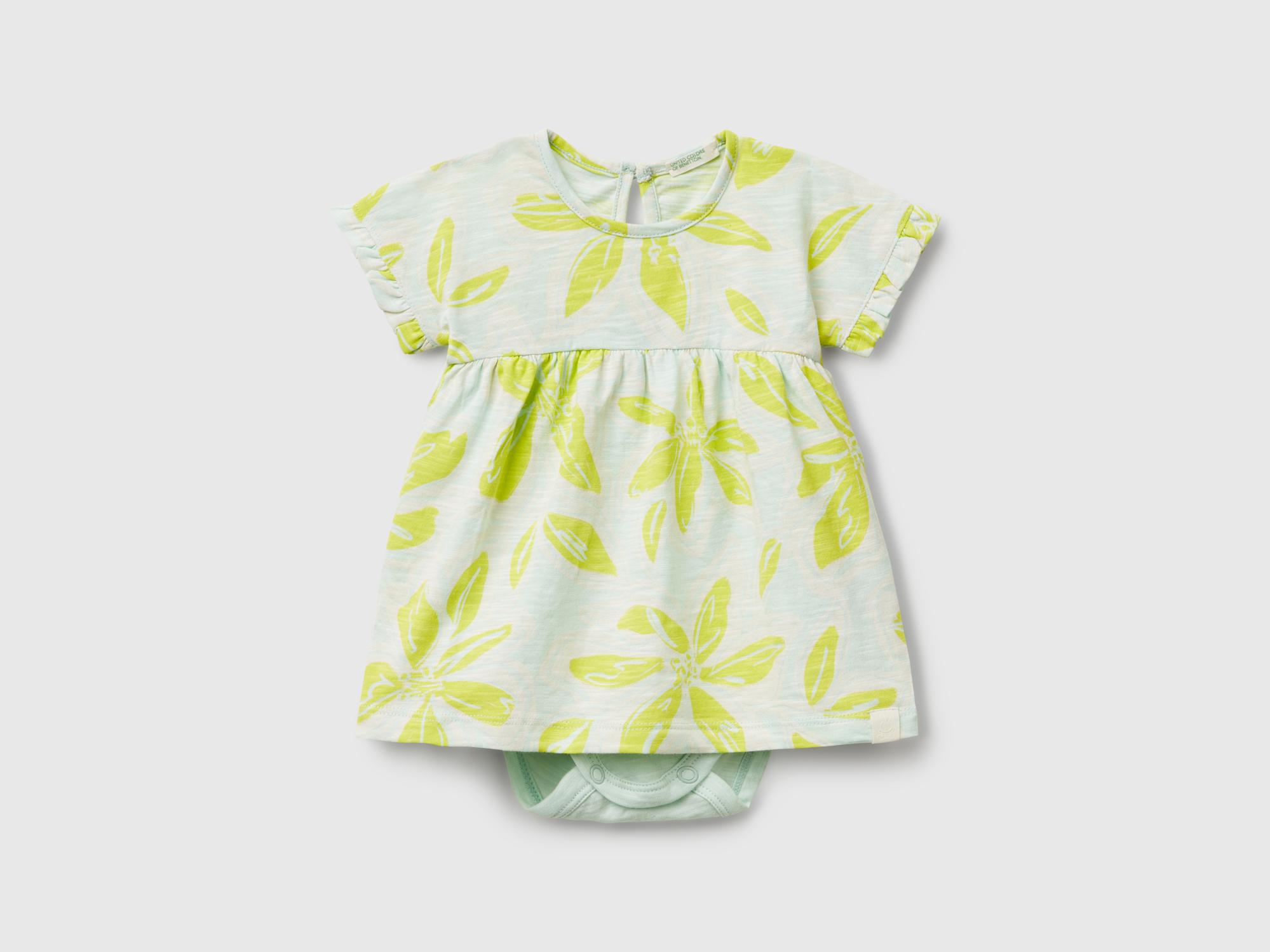 Bebek Su Yeşili Tamamı Desenli Kimono Kol İçi Bodysuitli Elbise