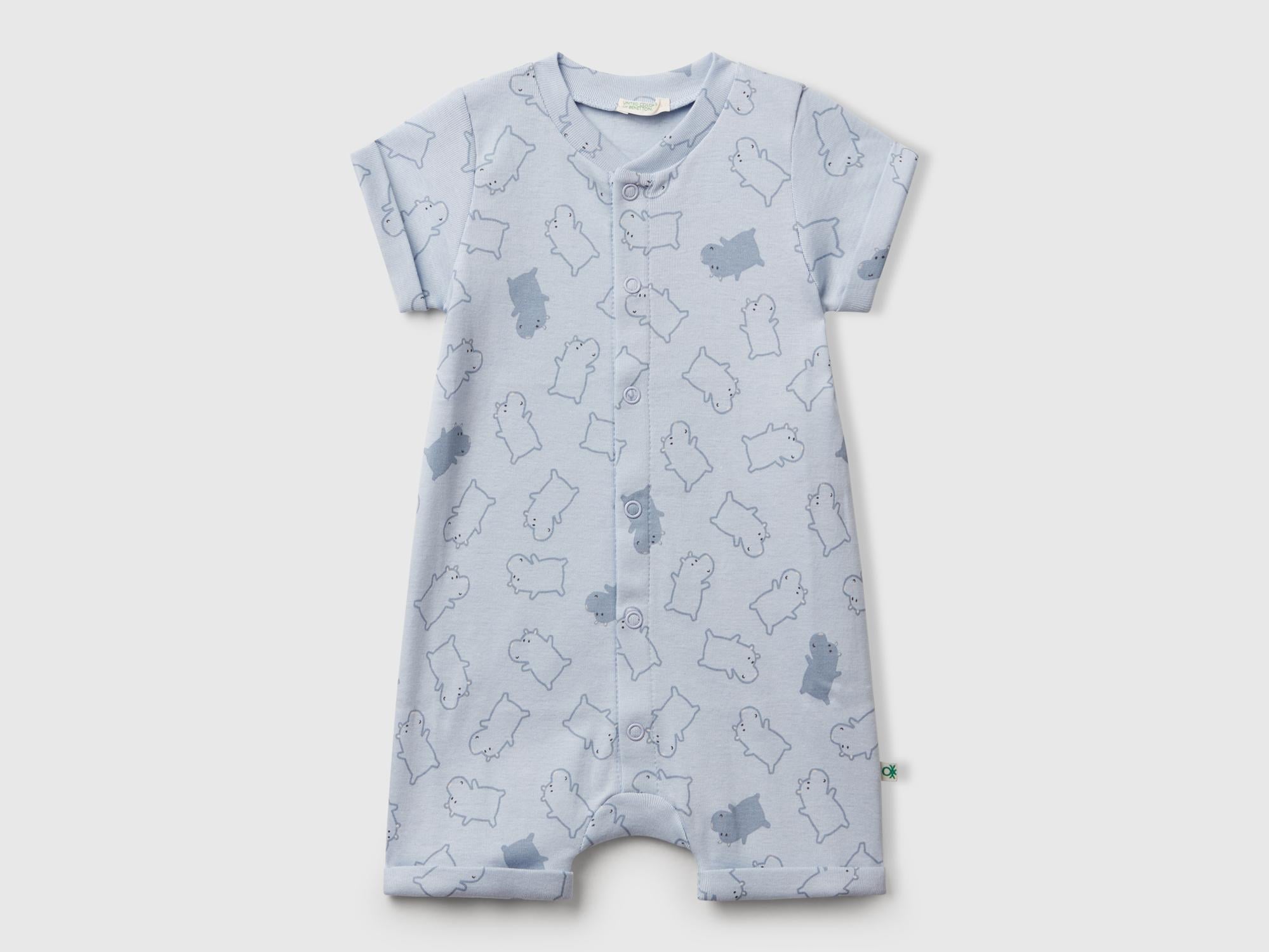 Bebek Toz Mavi Desenli Önü Çıtçıtlı Kısa Kollu Tulum