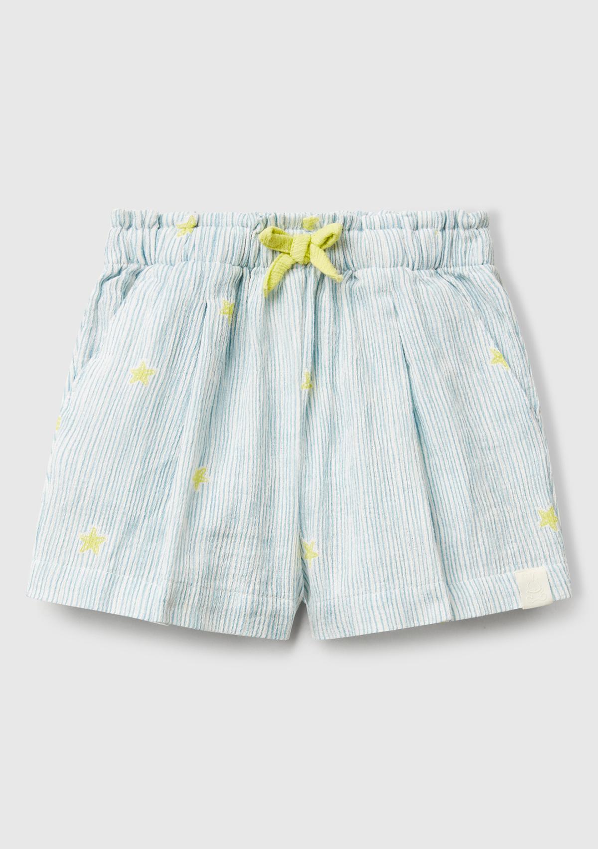 Bebek Toz Mavi Tamamı Desenli Logo Etiketli Büzgü İpli Müslin Şort