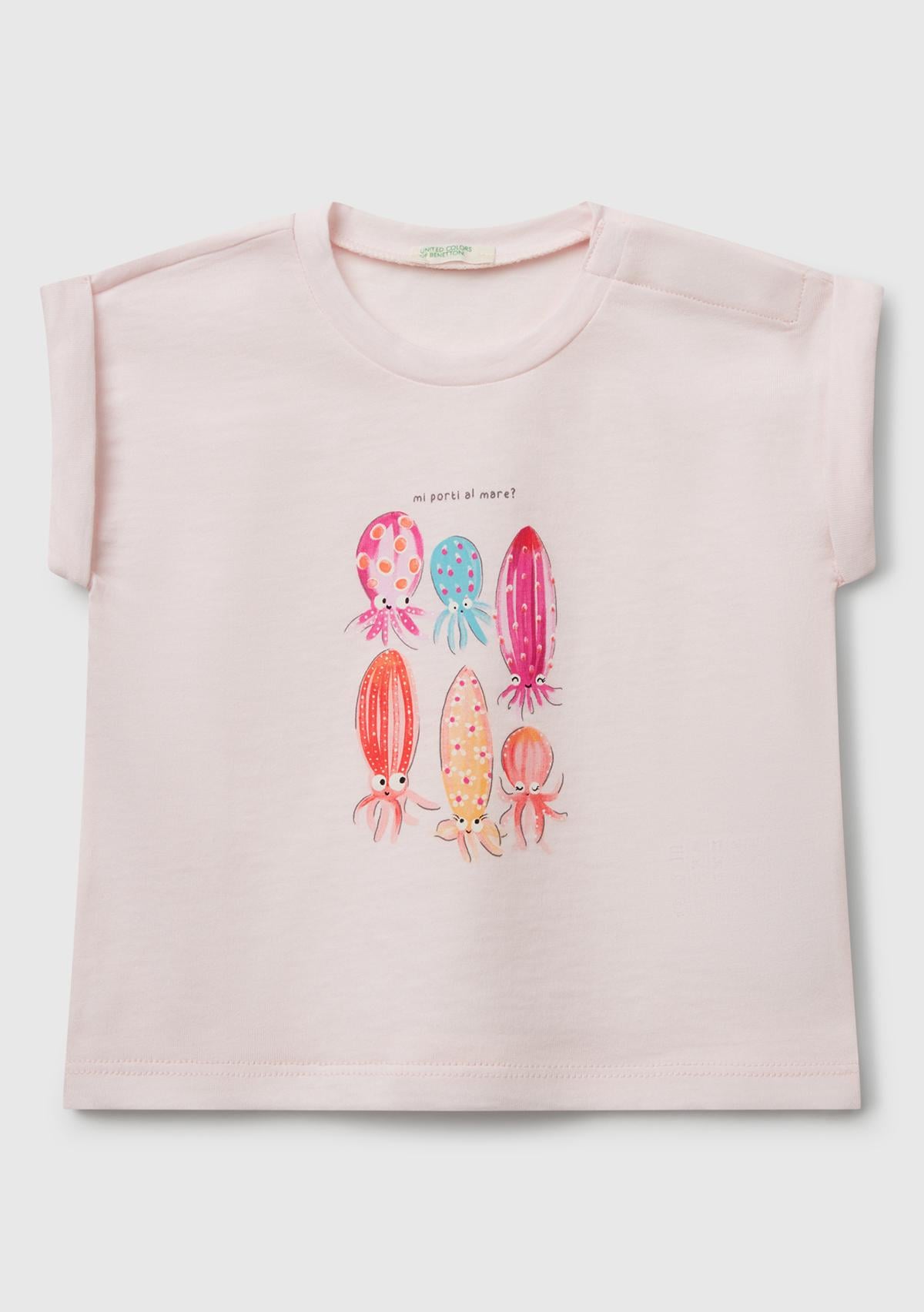 Bebek Toz Pembe Önü Baskılı Manşetli T-Shirt
