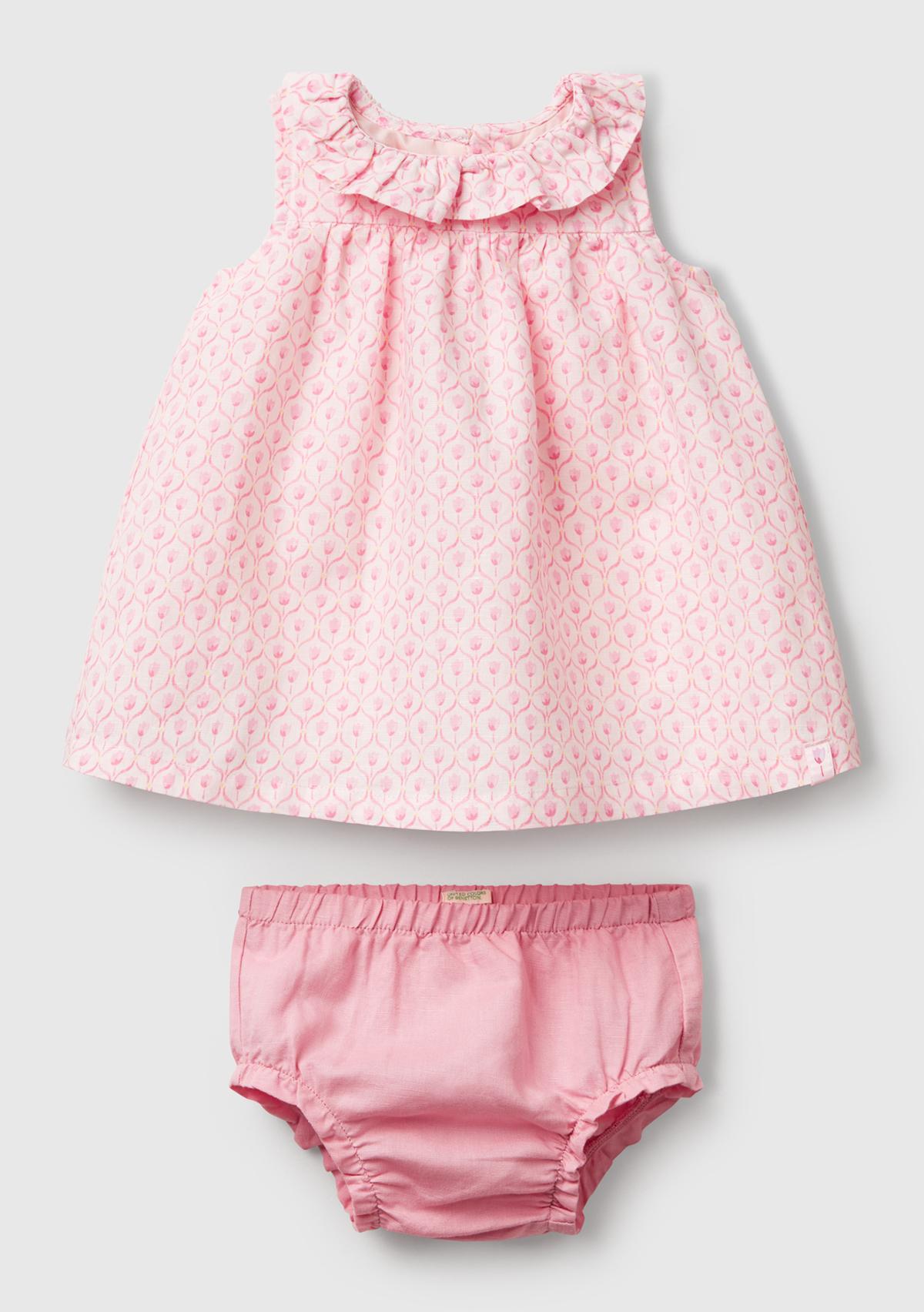 Bebek Toz Pembe Tamamı Desenli Yüksek Robalı Külot Takımlı Elbise