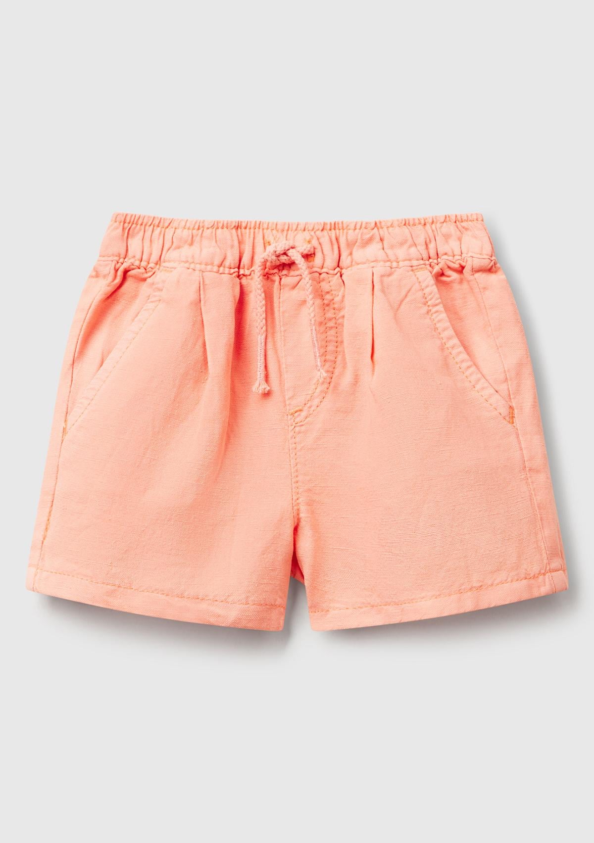 Bebek Yavruağzı Keten Karışımlı Sahte Cepli Büzgü İpli Şort