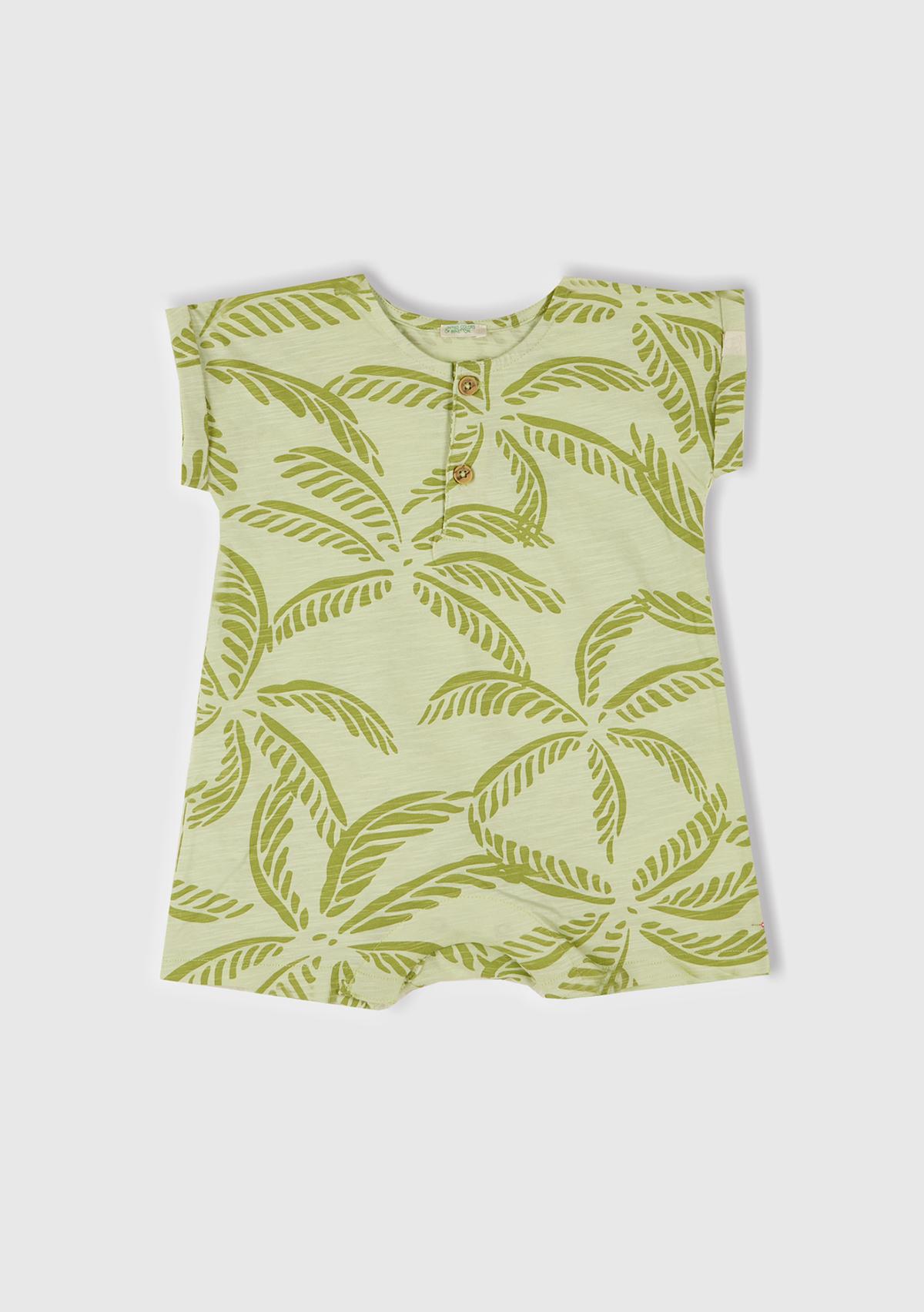 Bebek Yeşil Tamamı Desenli Önü Düğme Detaylı Gizli Çıtçıtlı Tulum