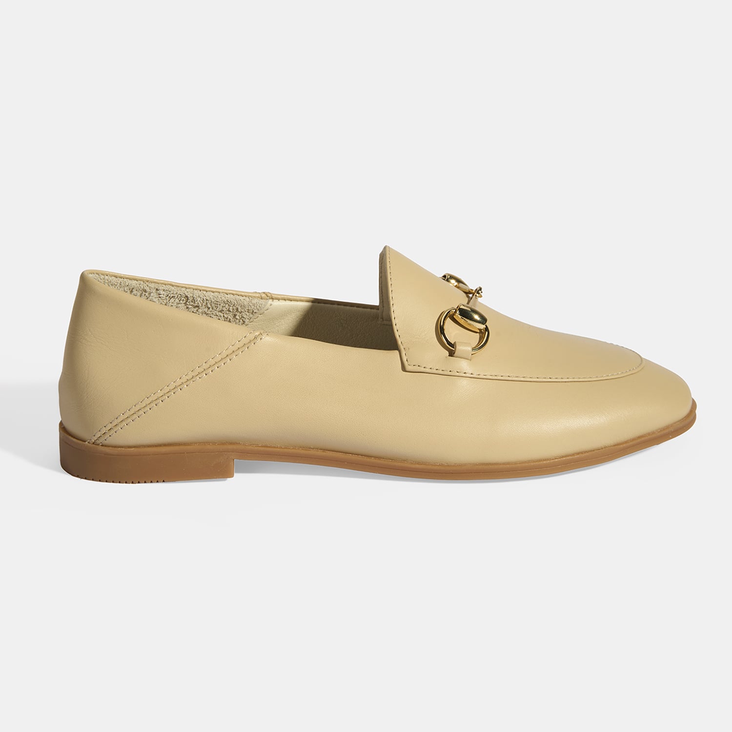 Bej Kadın Toka Aksesuarlı Deri Loafer