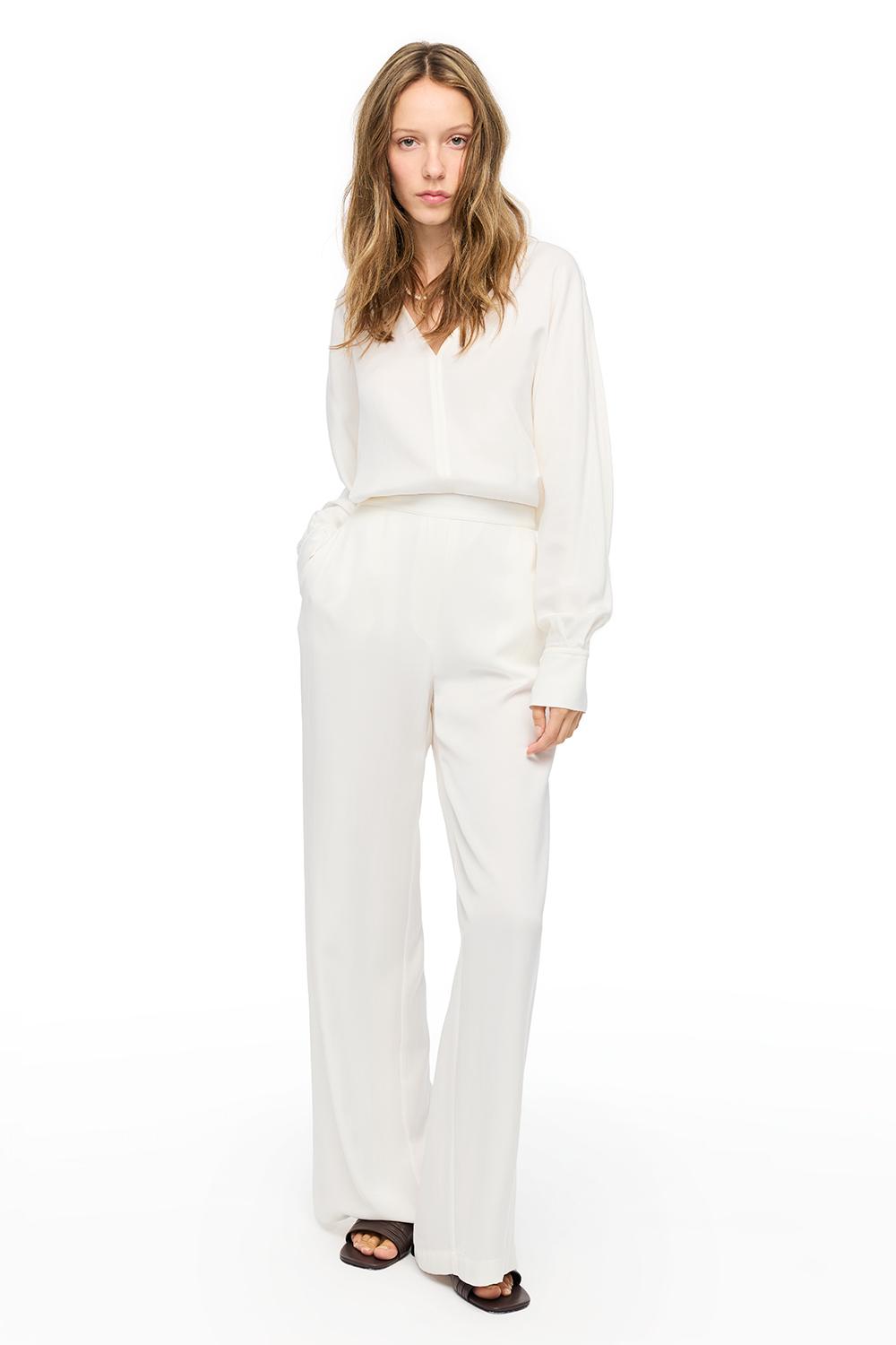 Beyaz Favors Rahat Kalıp Yüksek Bel Pantolon