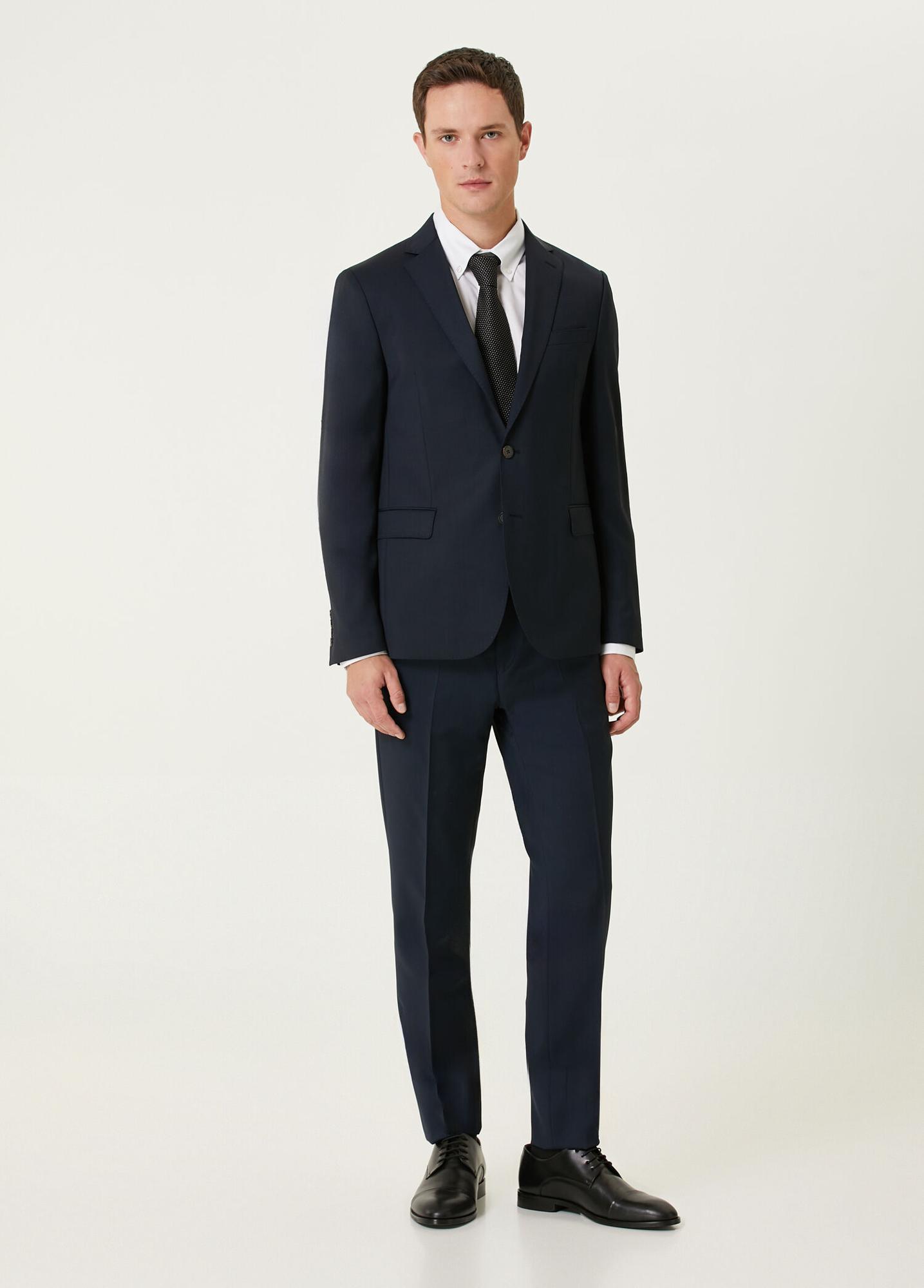 Regular Fit. Düz renk, takım elbise. Ceket: Kelebek yaka, düğme kapatmalı, yırtmaçlı, içi logo desen astarlı, 3 adet dış cepli, 3 adet iç cepli.Pantolon: Normal bel, dar paça, 4 adet cepli. Ürün bedeni: 48 / Model ölçüsü: Boy: 188 cm Göğüs: 95 cm Bel: 74 cm Kalça: 95 cm.