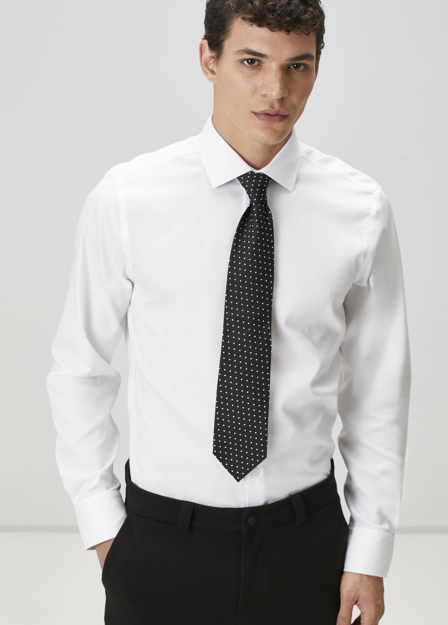 Klasik yaka, düğme kapatmalı, non-iron gömlek. Armürlü, köşeli manşetli. Kendinden desenli jakarlı kumaştan üretilmiştir. Ürün bedeni: M / Model ölçüsü: Boy: 185 cm - Göğüs: 96 cm - Bel: 77 cm - Kalça: 94 cm.