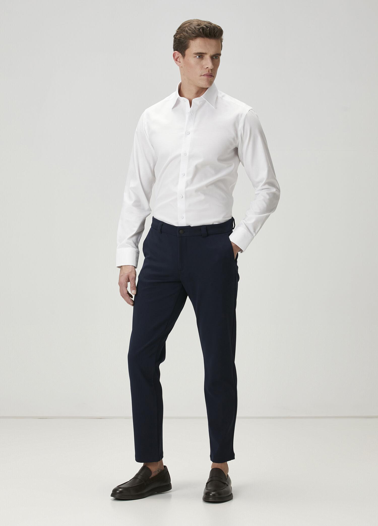 Slim Fit. Normal bel, dar paça, chino pantolon. Düz renk, 4 adet cepli. Ürün bedeni: 48 / Model ölçüsü: Boy: 188 cm - Göğüs: 93 cm - Bel: 77 cm - Kalça: 93 cm.