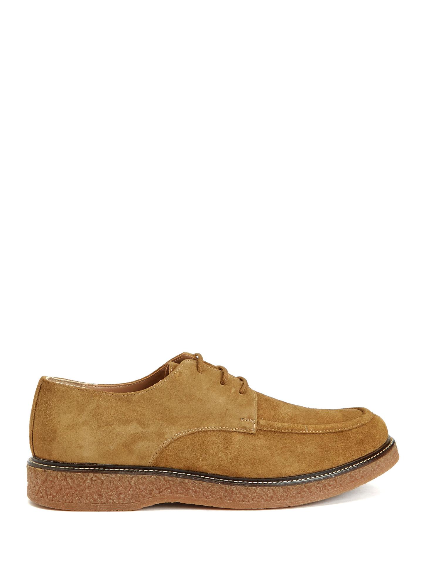 Yuvarlak burun, bağcıklı, deri ayakkabı. Kauçuk taban