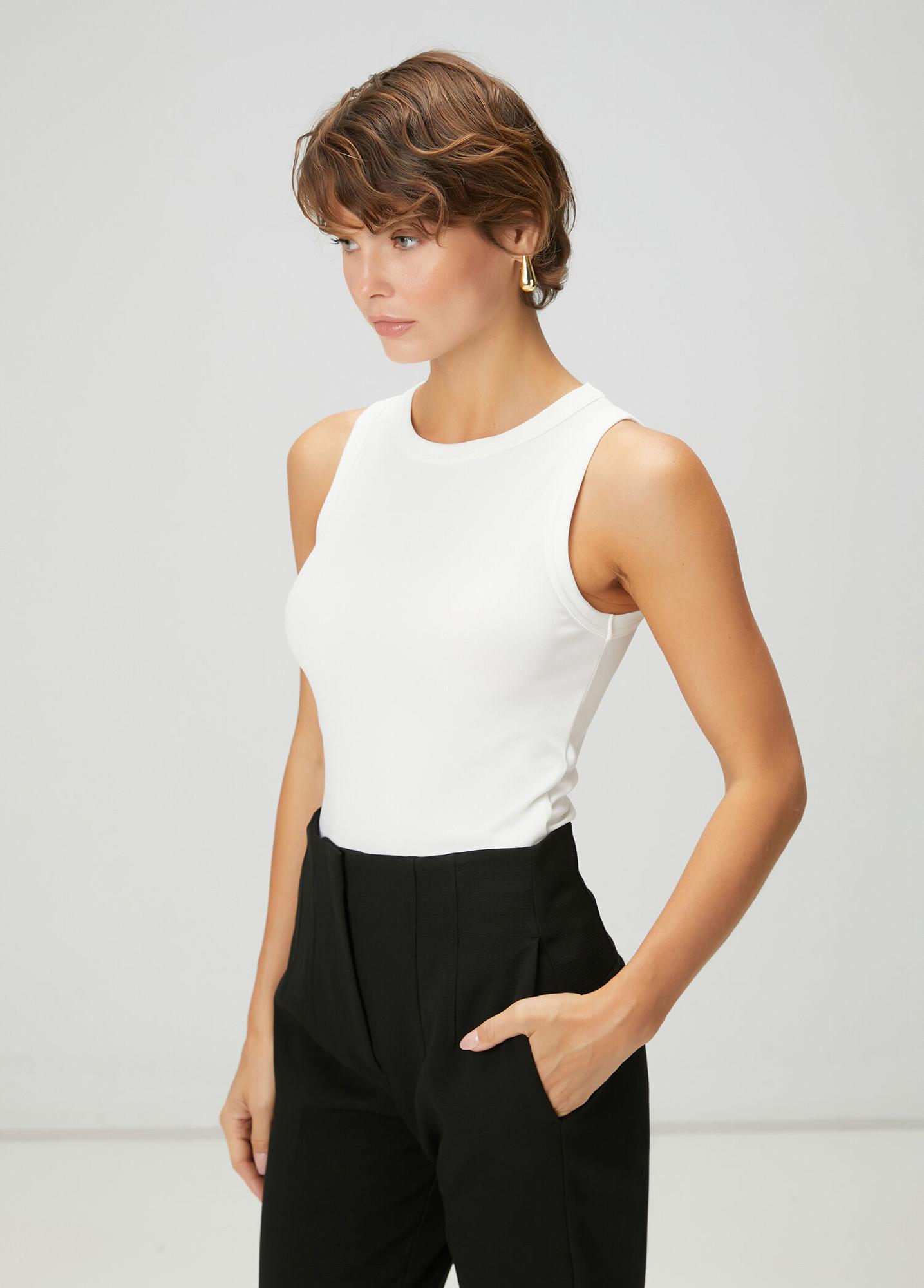 Bisiklet yaka, soğuk tuşe, kaşkorse atlet. Ürün bedeni: S / Model ölçüsü: Boy: 172 cm - Göğüs: 83 cm - Bel: 62 cm - Kalça: 91 cm.