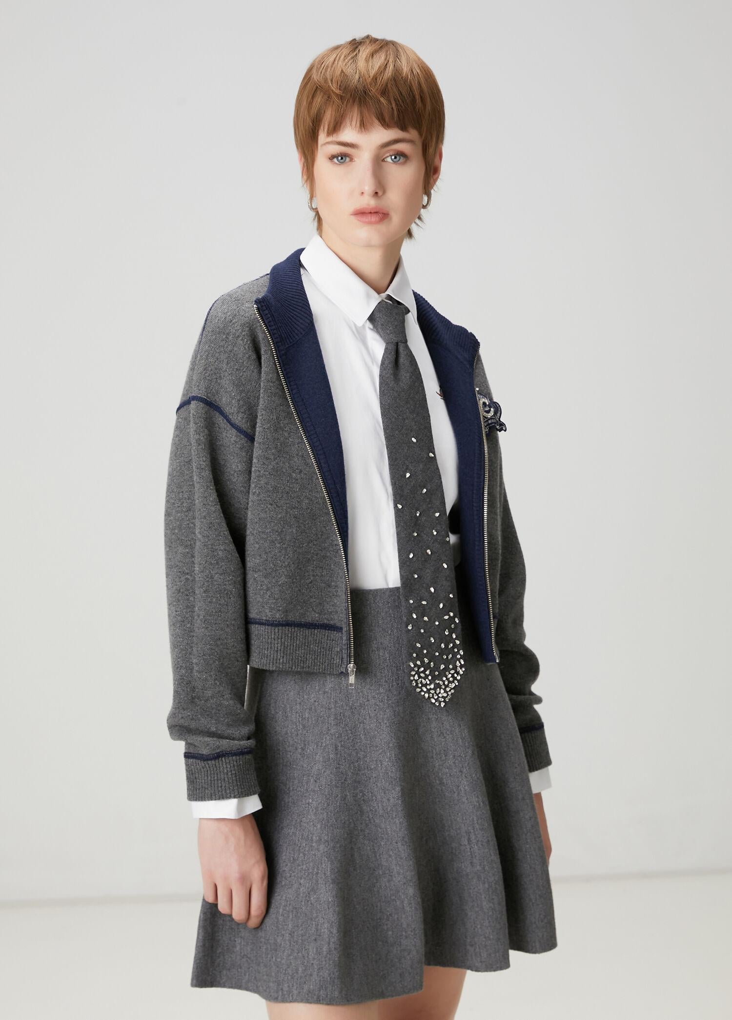 Dik yaka, fermuar kapatmalı hırka. Dikiş detaylı, işlemeli logolu. Ürün bedeni: S / Model ölçüsü: Boy: 178 cm - Göğüs: 82 cm - Bel:62 cm - Kalça: 89 cm. Yeni sezon hazır giyim alışverişlerinizde ücretsiz tadilat yapılmaktadır