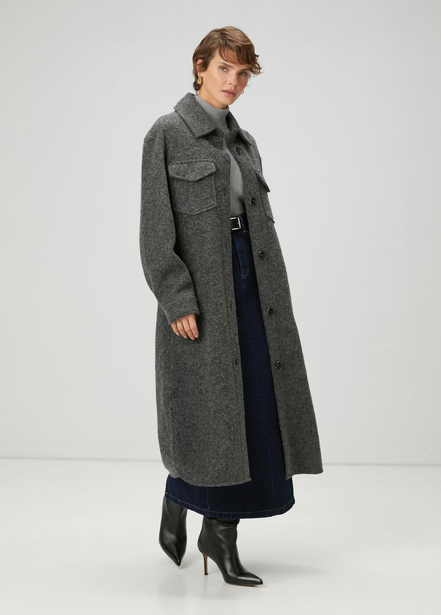 Beymen Club Kadın Gri Yıldız Nakışlı Uzun Yün Dış Gömlek