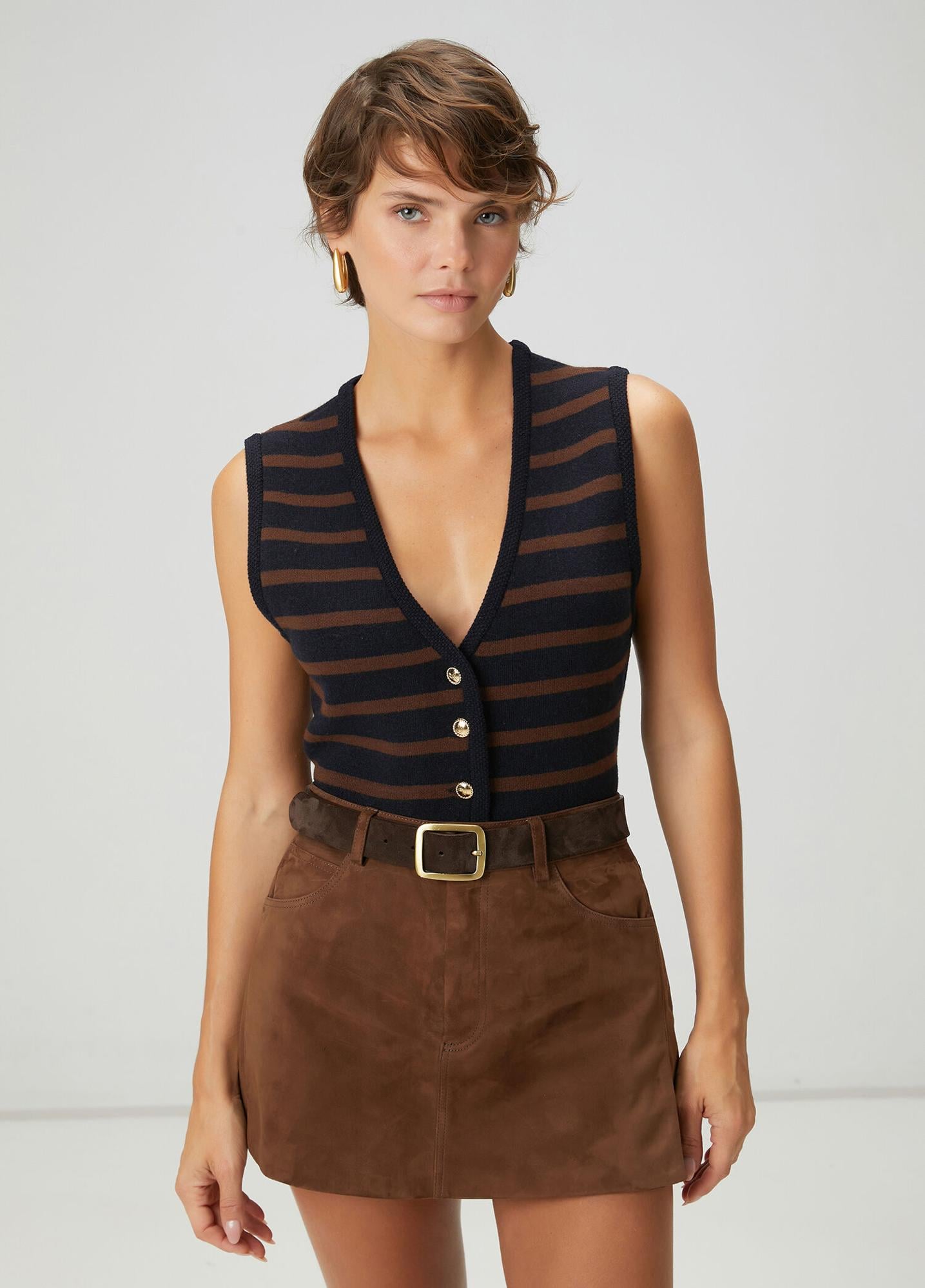 Beymen Club Kadın Kahve Lacivert Çizgili Yün Yelek