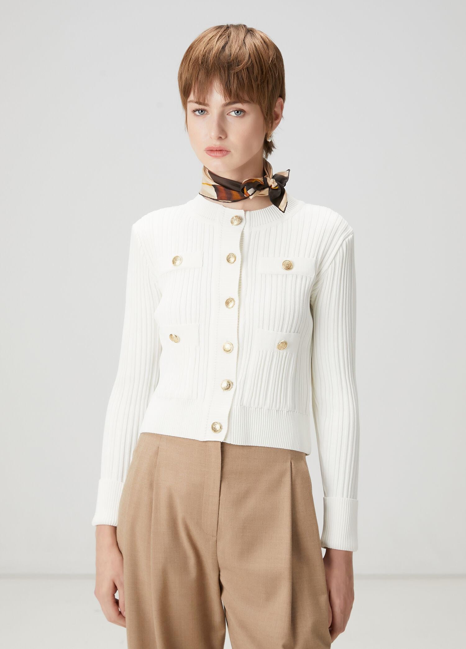 Slim Fit. Bisiklet yaka, gold düğmeli, kutu formlu triko ceket. Ribanalı, 4 adet cepli. Ürün bedeni: S / Model ölçüsü: Boy: 178 cmGöğüs: 85 cm Bel: 59 cm Kalça: 91 cm.