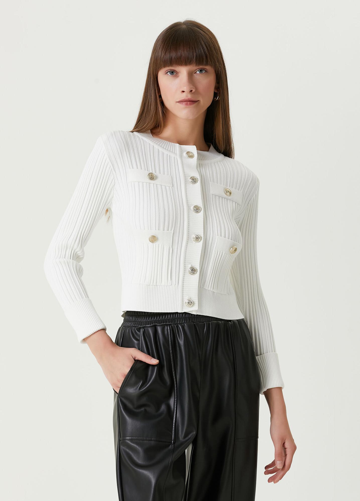 Bisiklet yaka, düğme kapatmalı, triko ceket. Kutu formlu, 4 cepli. Ürün bedeni: S / Model ölçüsü: Boy: 178 cm - Göğüs: 85 cm - Bel:60 cm - Kalça: 89 cm. Yeni sezon hazır giyim alışverişlerinizde ücretsiz tadilat yapılmaktadır