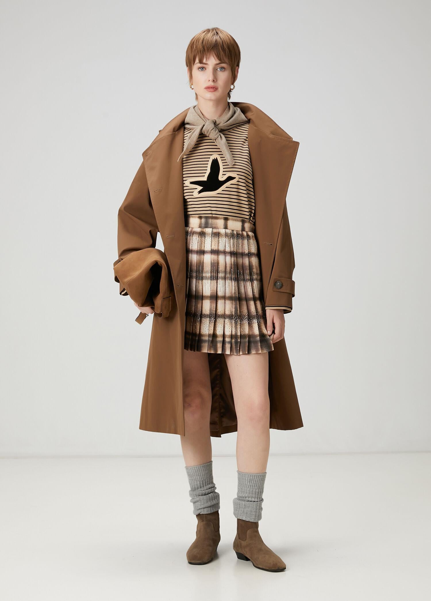 Beymen Club Kadın Koyu Bej Desenli Pileli Mini Etek