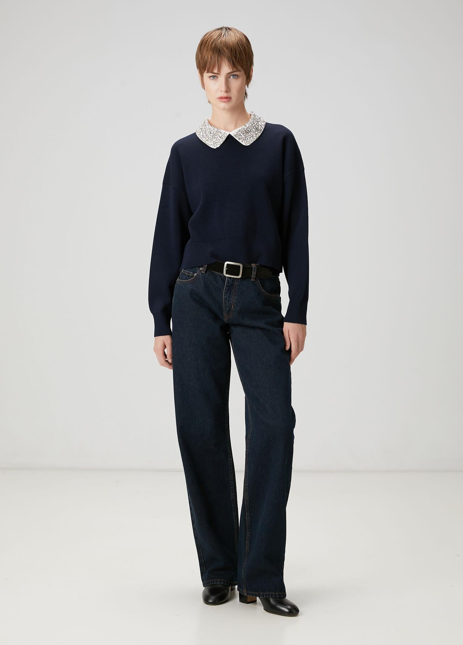Normal (mid-rise) bel, düz (straight) paça jean pantolon. 5 adet cepli. Ürün bedeni: 26 / Model ölçüsü: Boy: 178 cm Göğüs: 85 cm Bel: 59 cm Kalça: 91 cm.