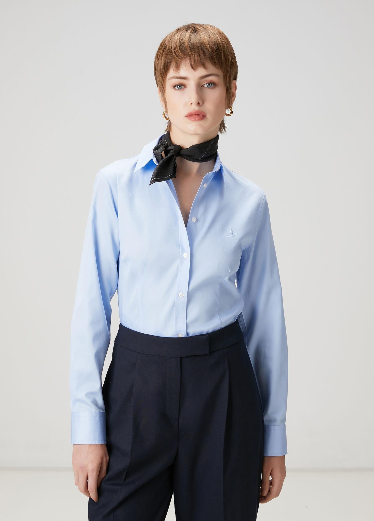 Klasik yaka, düğme kapatmalı gömlek. Logo nakışlı. Ürün bedeni: S / Model ölçüsü: Boy: 178 cm - Göğüs: 82 cm - Bel: 62 cm - Kalça: 89 cm.
